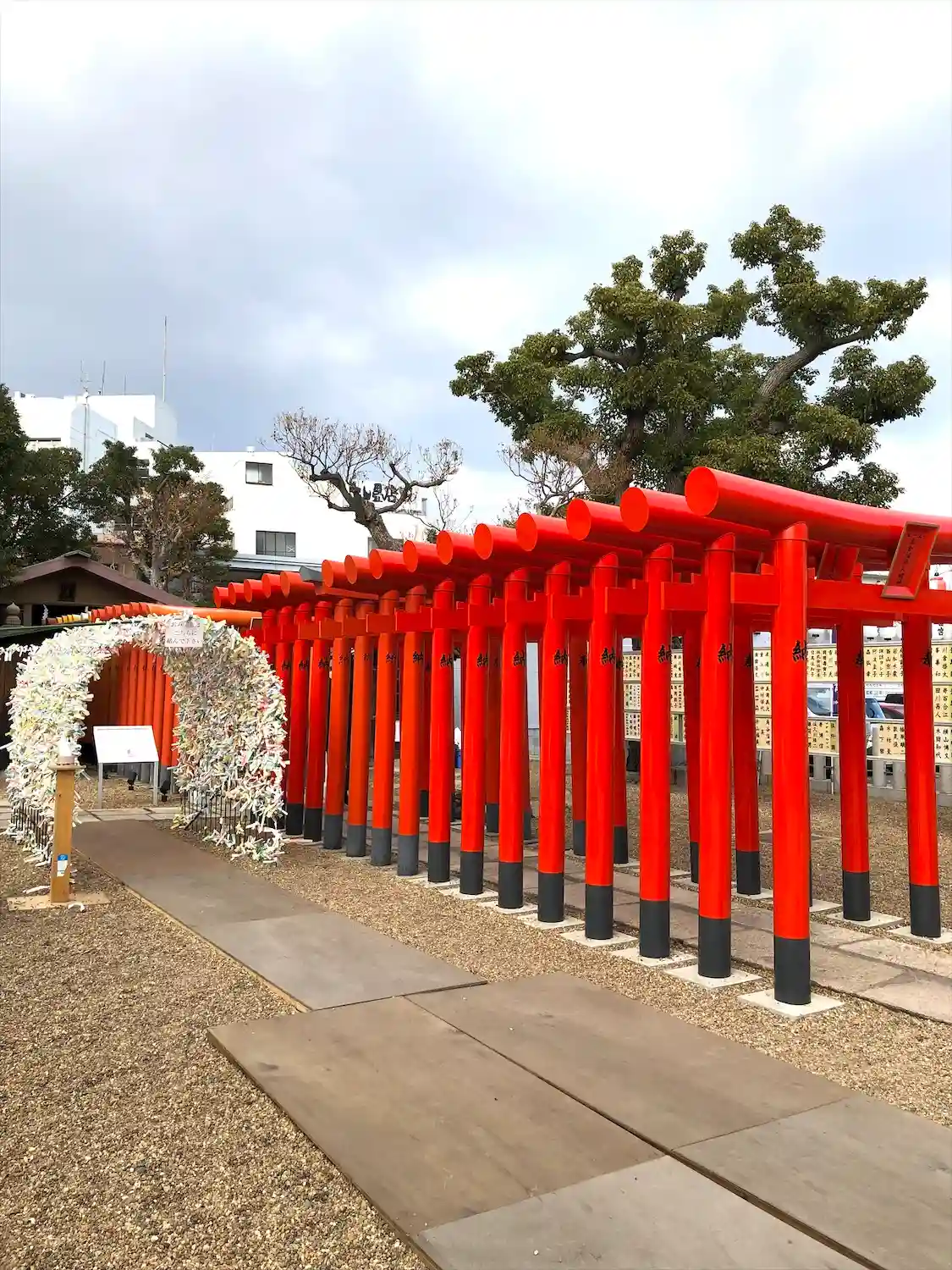 赤くて大きな鳥居、大きな幕が圧巻です!