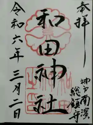 ![和田神社の御朱印]()