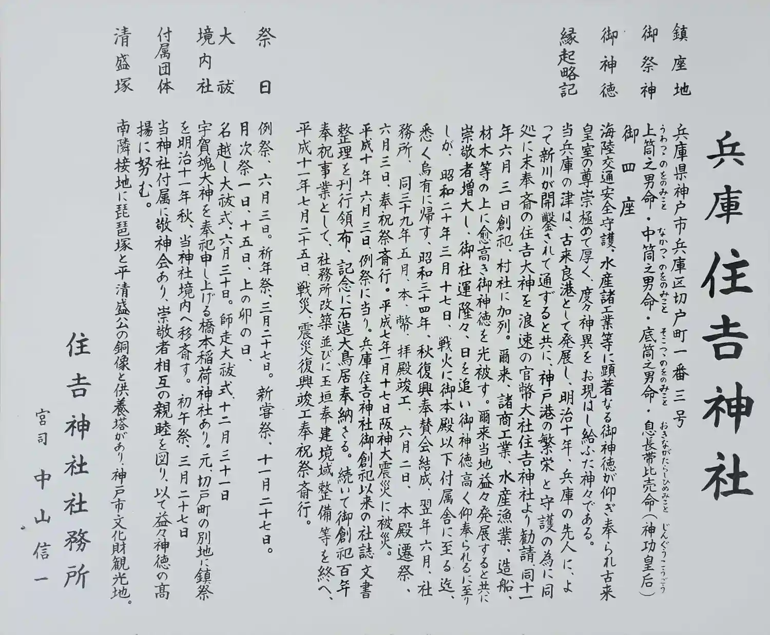 | ご祭神 | 《主》上筒之男命,中筒之男命,底筒之男命,息長帯比売命 | |