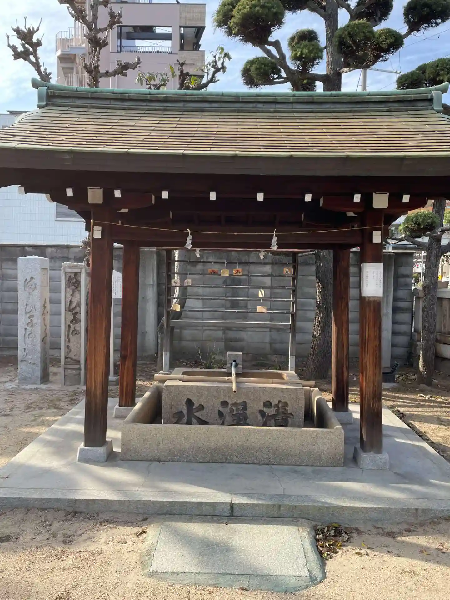 警察活動の行き届かなかった時代 迷い子さがしの方法として考えられ 神社塀外に建っていたのがこの建て石です。