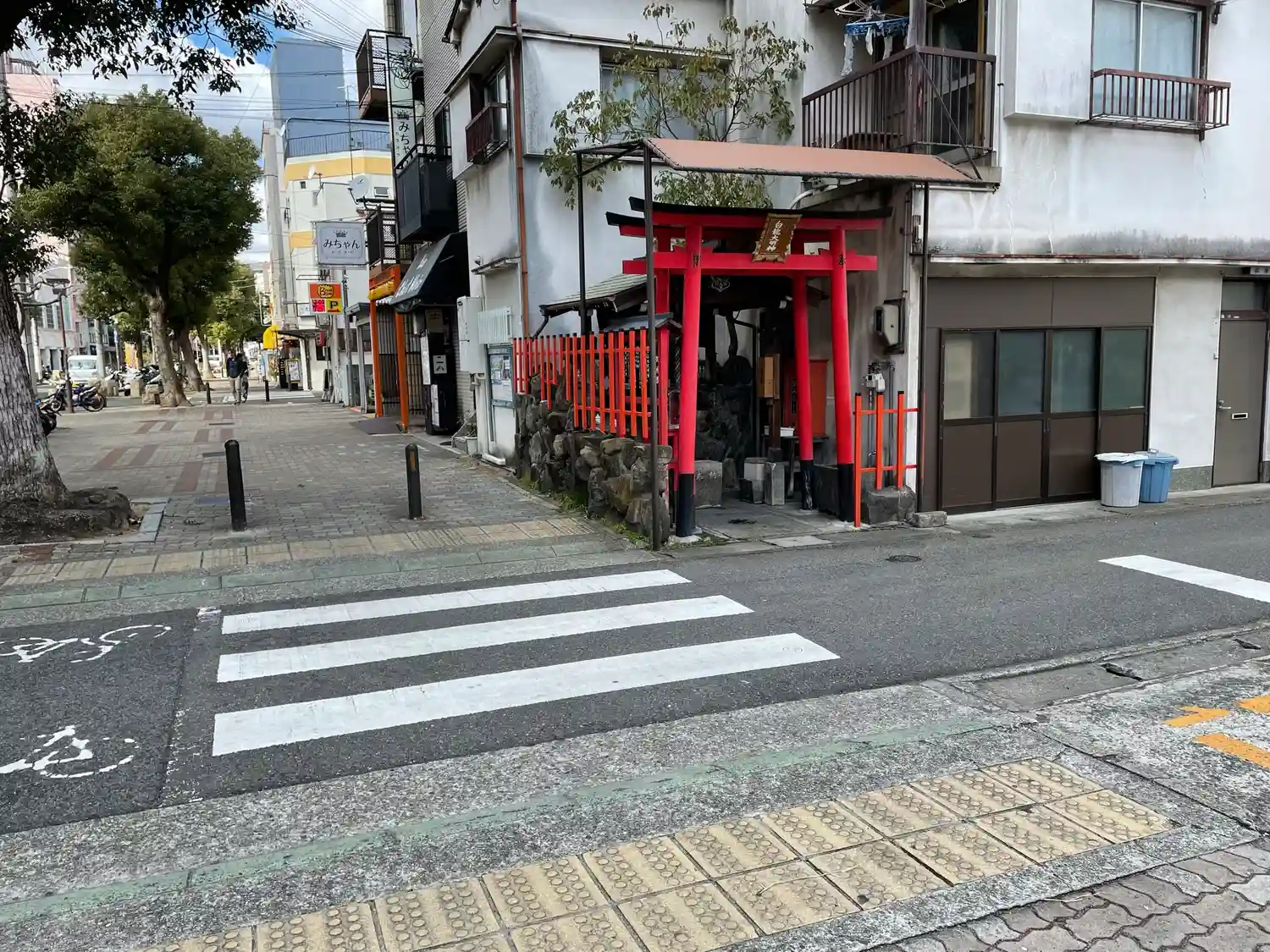 商店街の辺は絶対神社あるわって感で、商店街をキョロキョロしてたら遠くに朱色の塀が見えた。