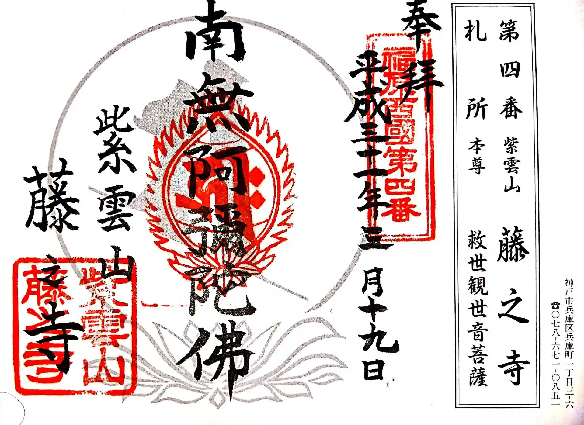 福原西国三十三所観音霊場 第4番の御朱印です。