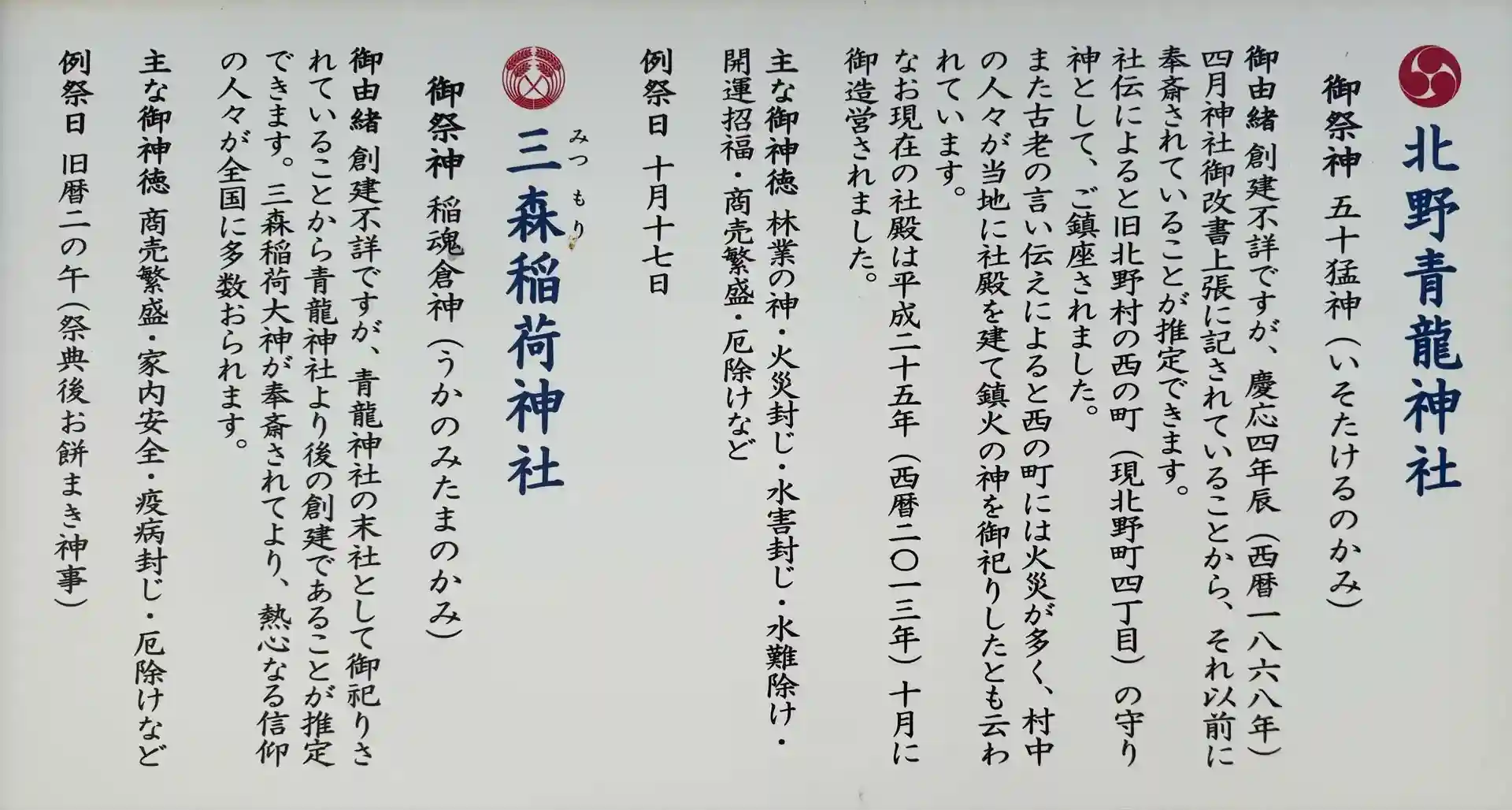 きたのせいりゅうじんじゃ/みつもりいなりじんじゃ