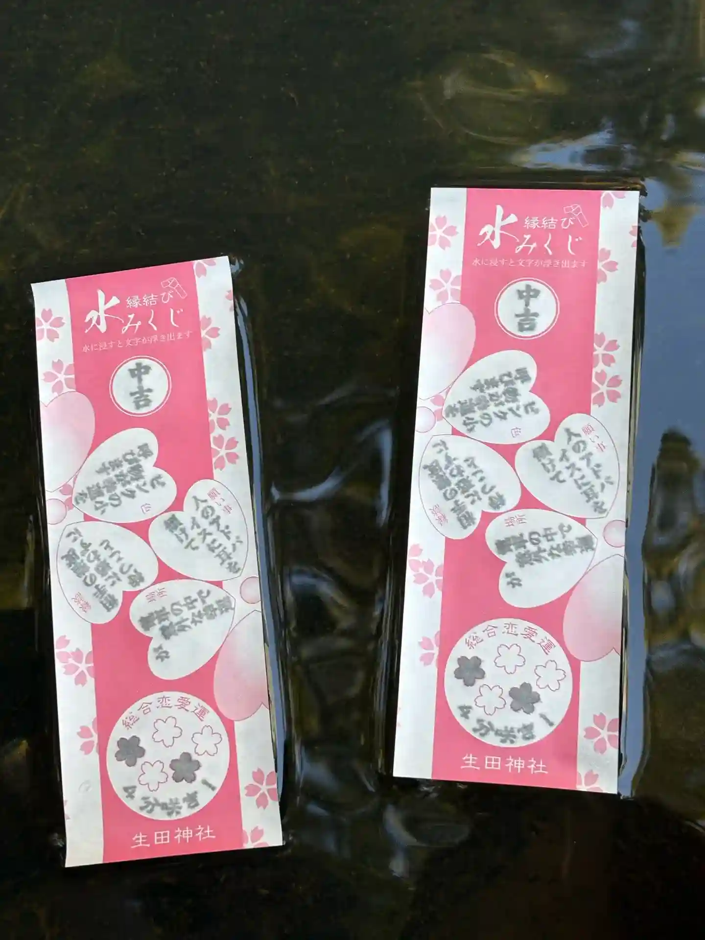 本殿の奥の森は特に静かで、ゆったりできるベンチや水みくじを浸せる場所もあり、とっても居心地がよかったです。