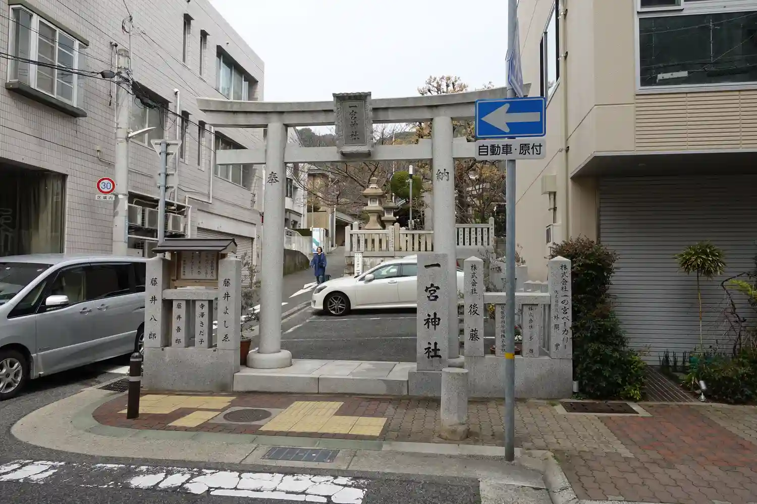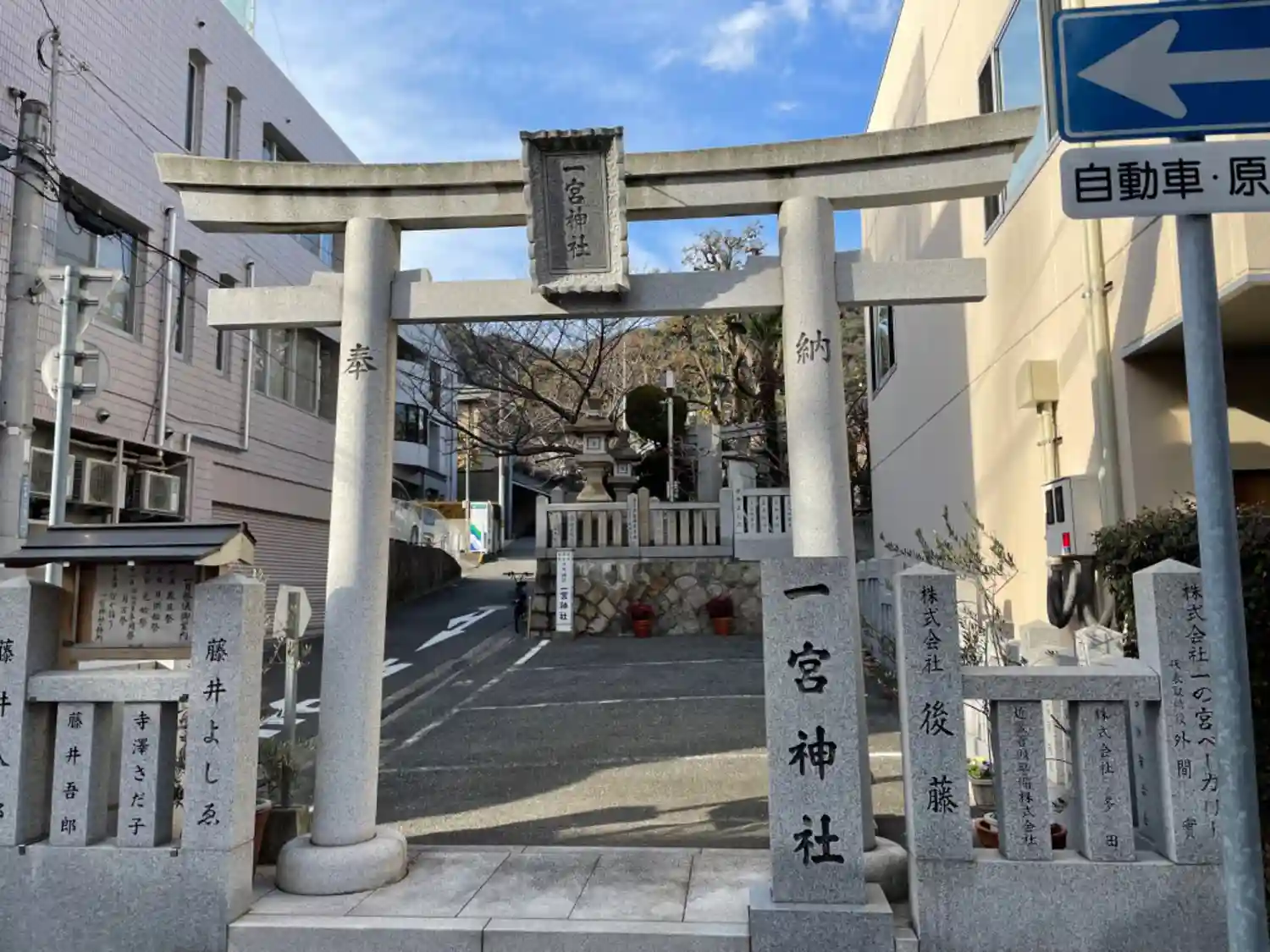北野坂の途中を右折すると、すぐにわかります。一宮神社です。三、二、一、と逆行したけれど、これで神戸…