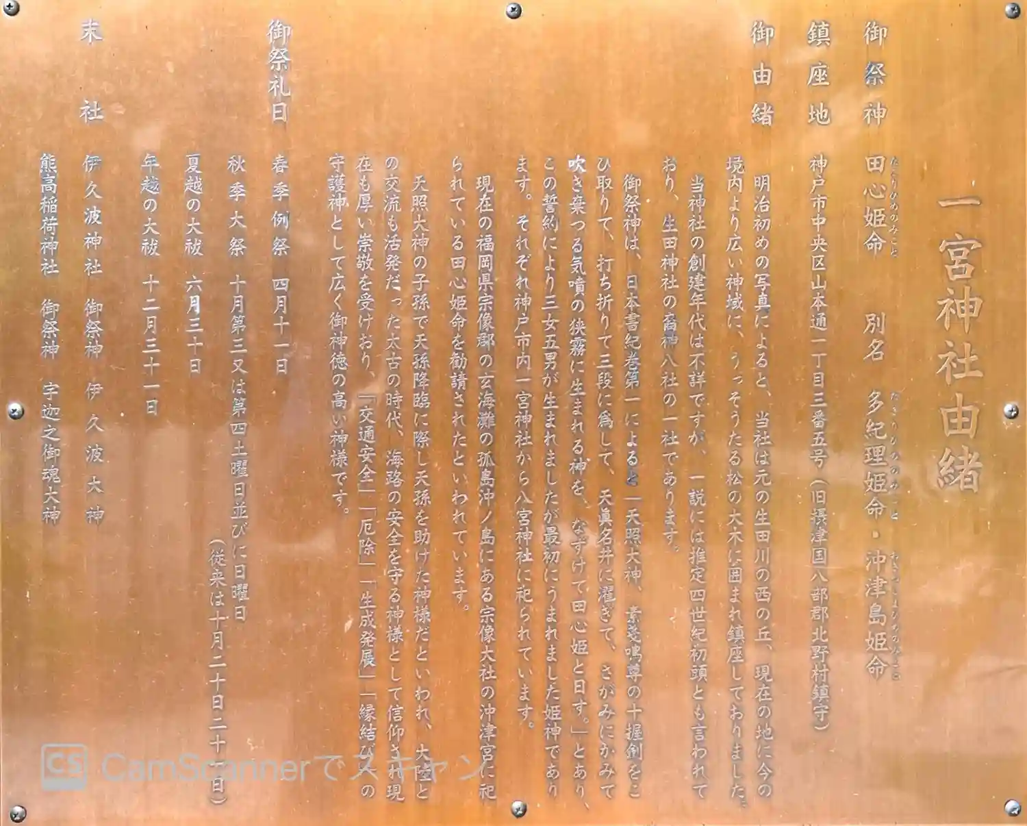 | ご祭神 | 《主》田心姫命 |