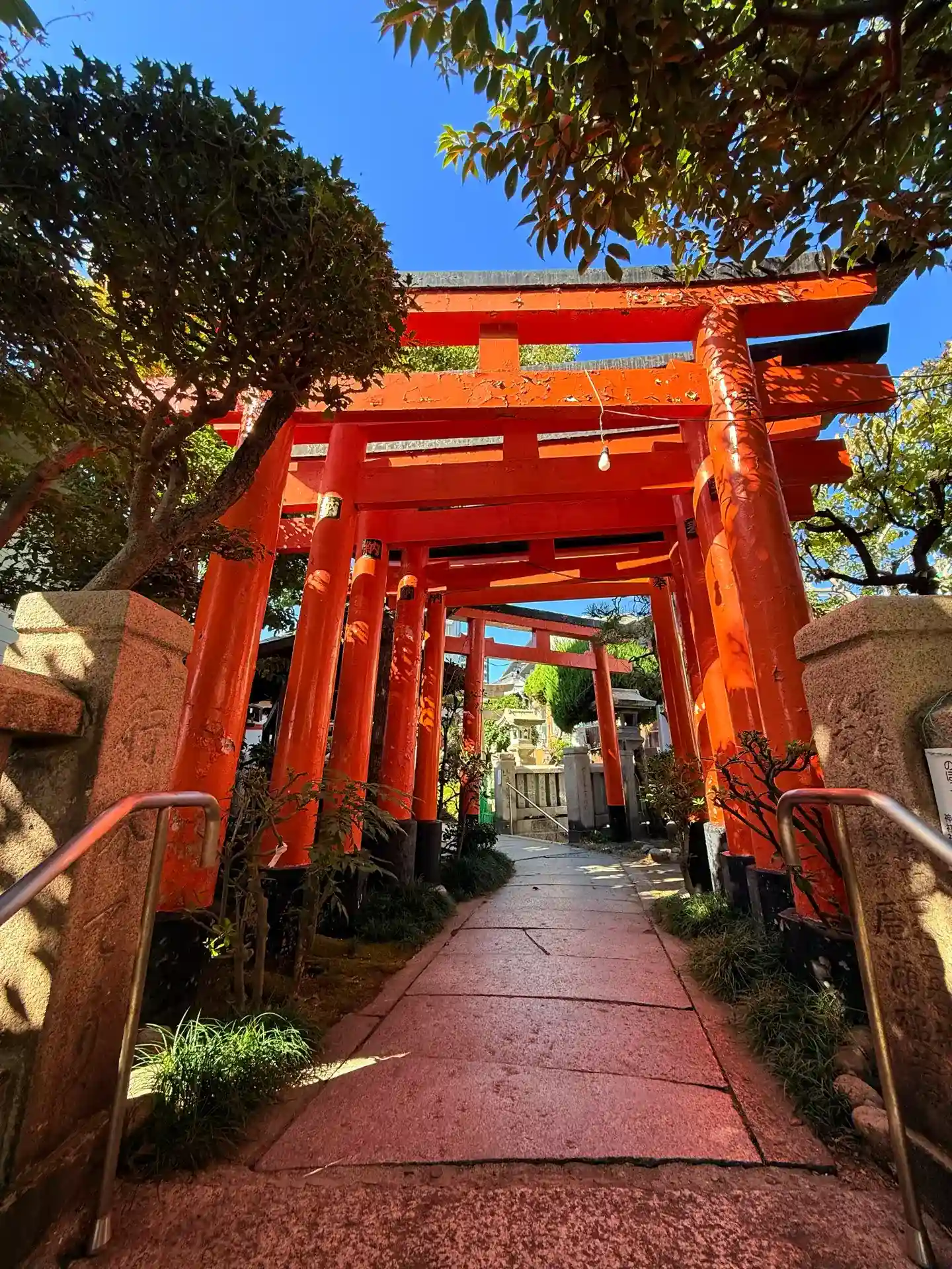 住宅の中に綺麗な朱色の鳥居が佇む松尾稲荷神社です⛩