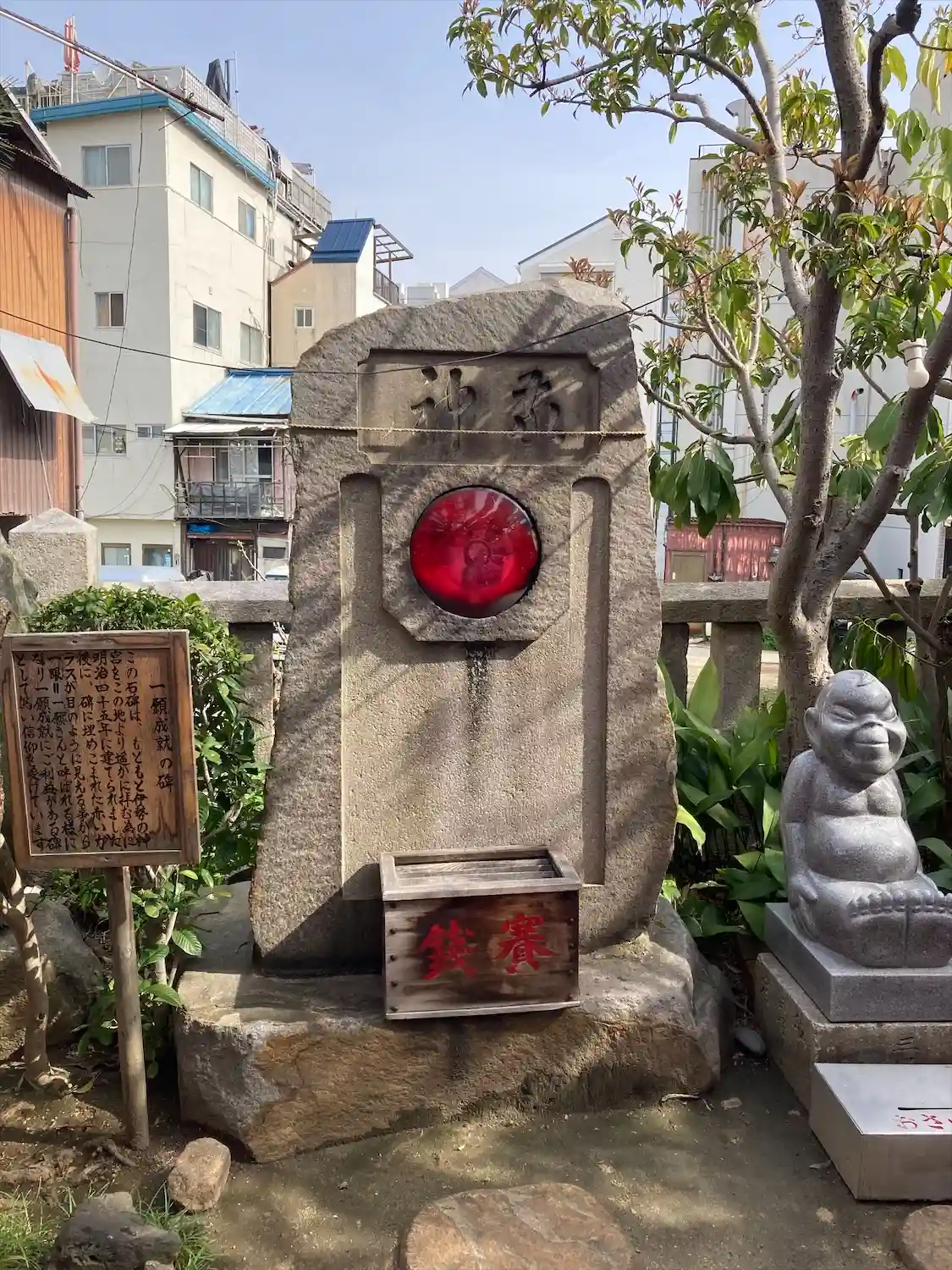 一願成就の碑 赤いガラスが美しい