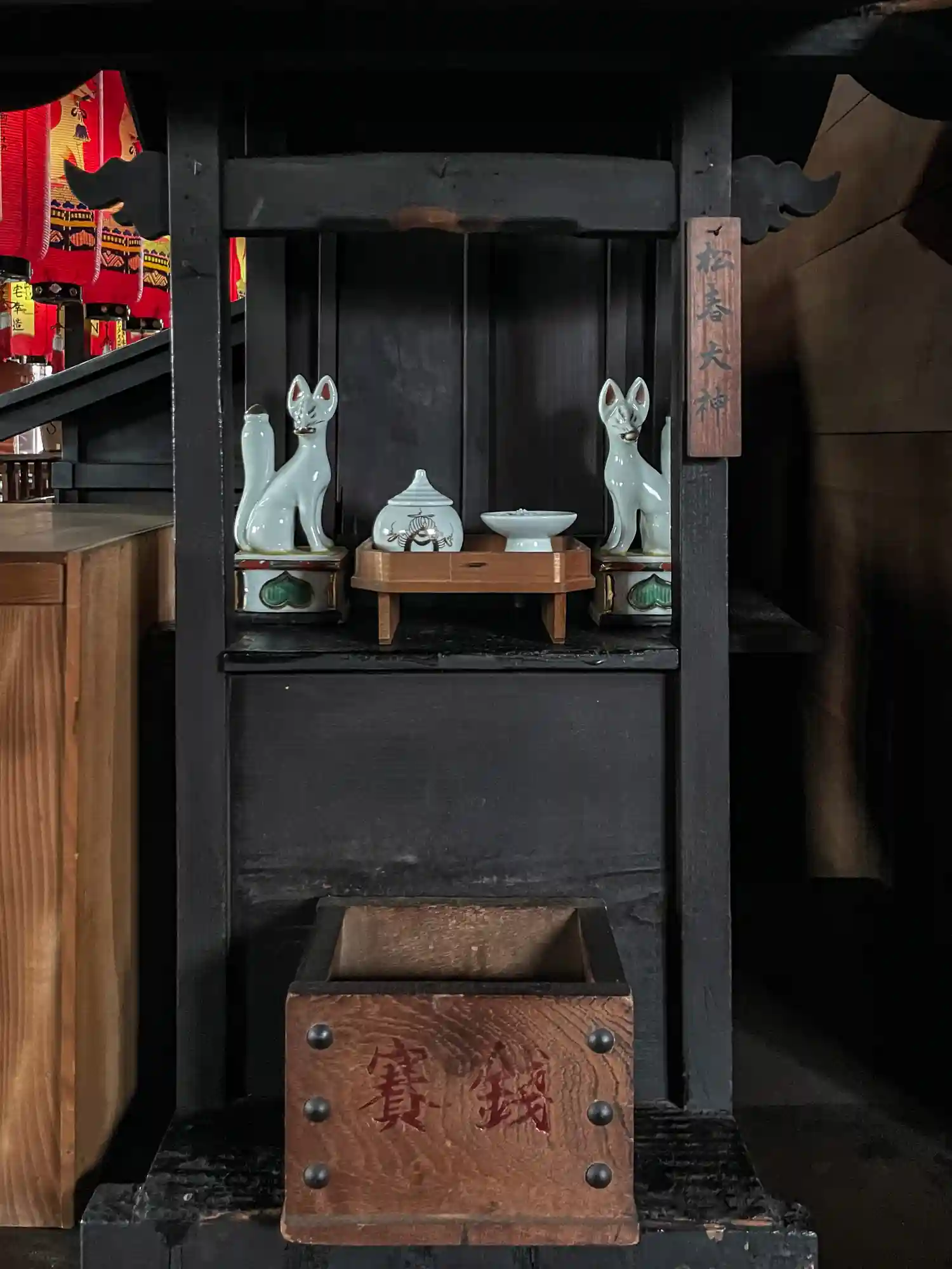 奥は赤い提灯 さらに奥に本殿
