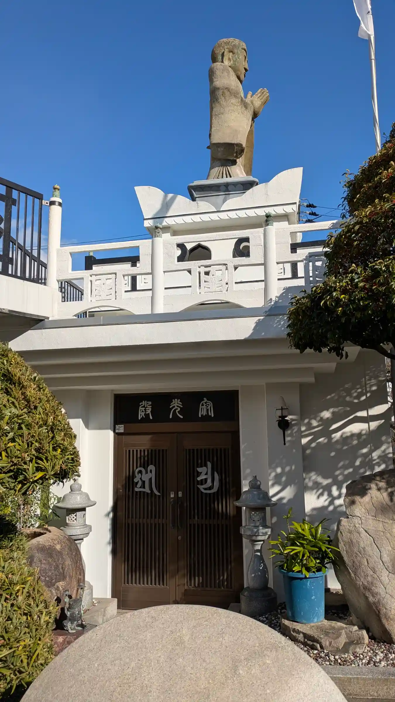 GoogleMap頼りに本寿寺へ。お題目の石標の上になかなかの大きさの像😲日蓮宗だから日蓮上人かな…