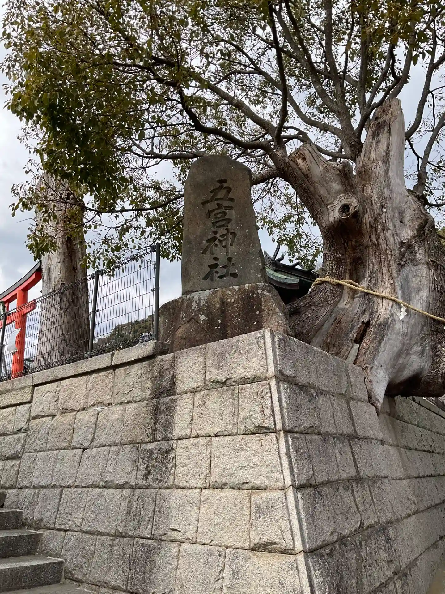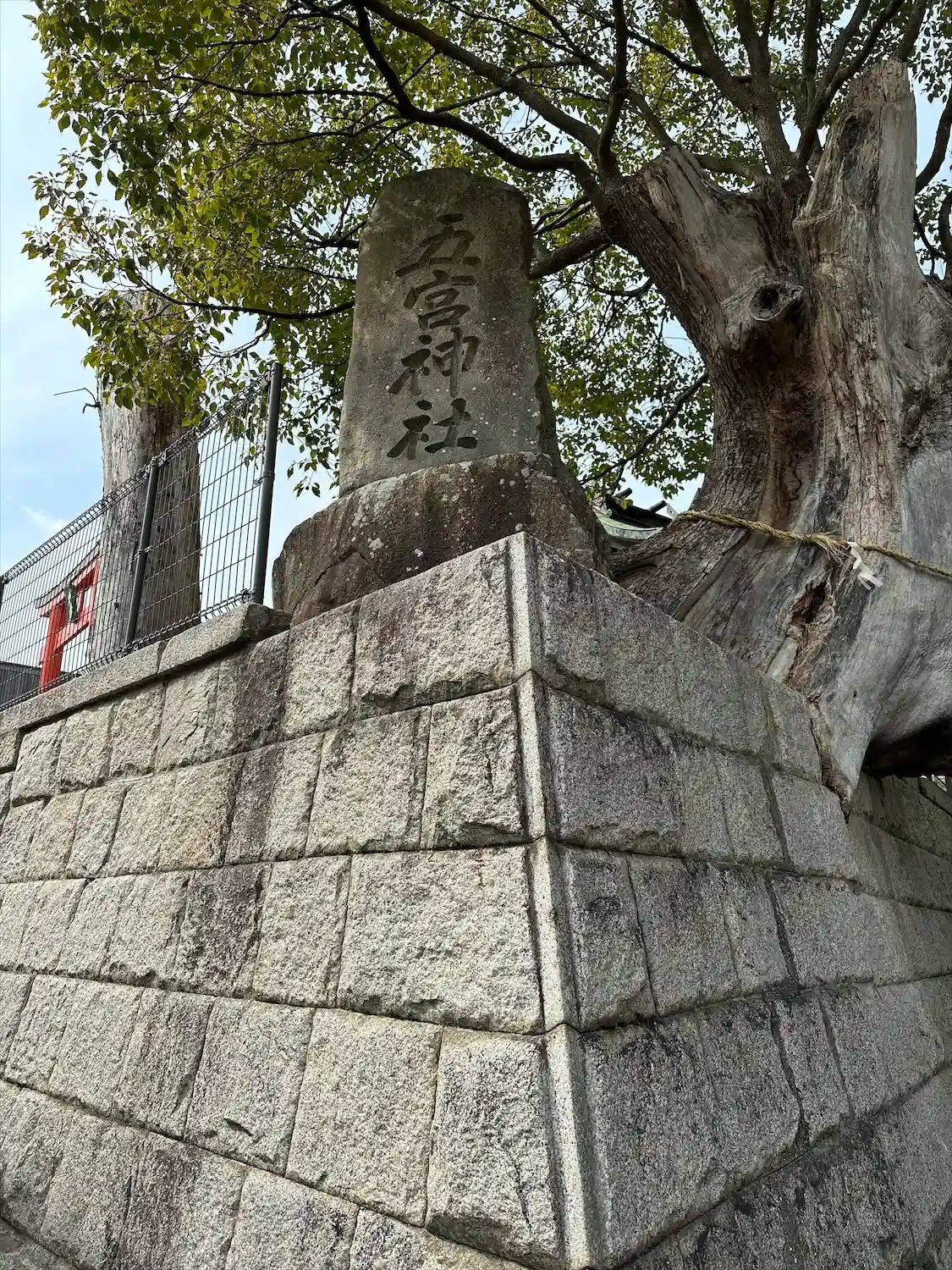 神社東側にある石柱。鳥居に神社名書いてないから五宮神社さんってわかるのこれだけ。