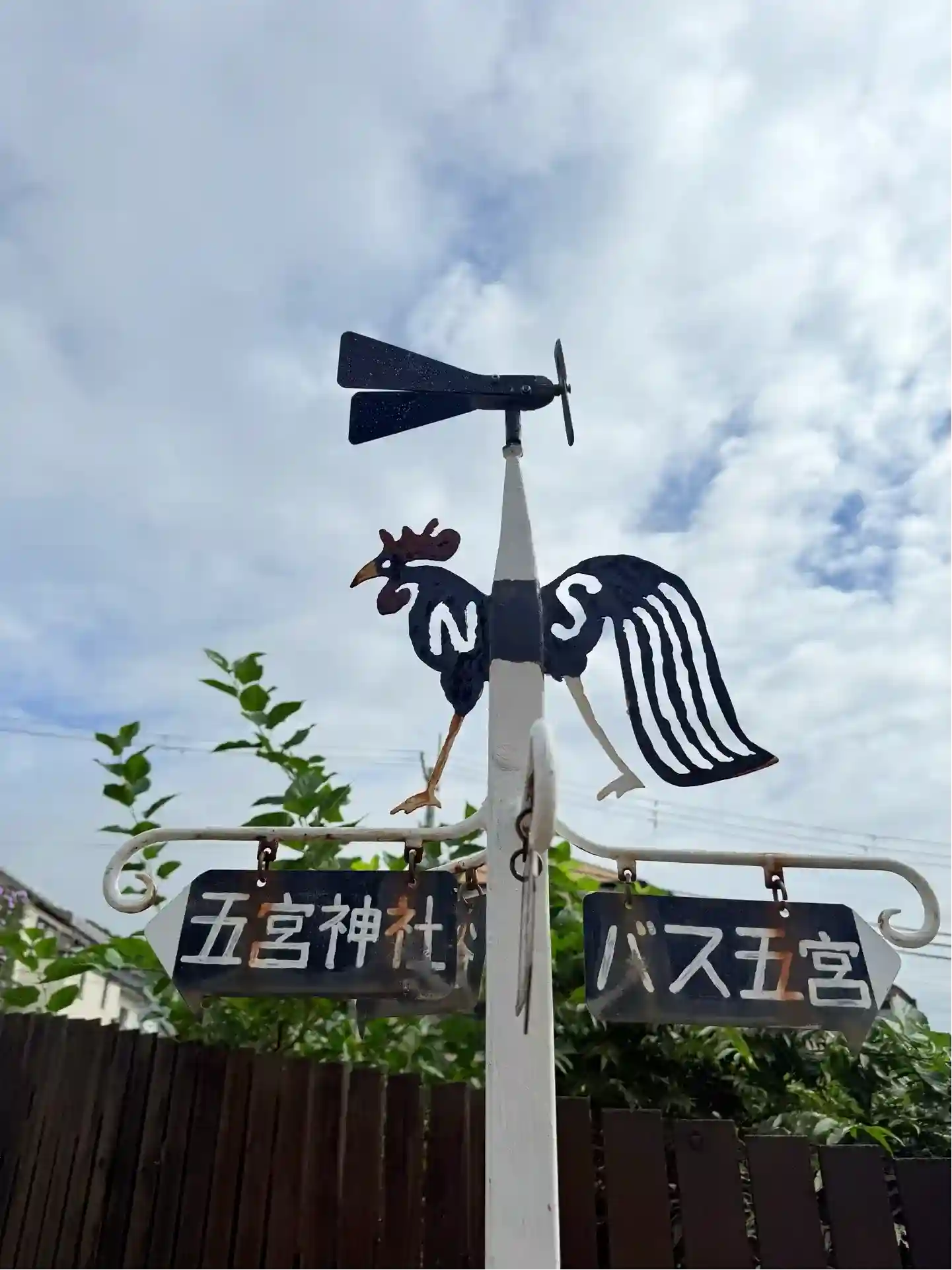 鳥居の手前に風見鶏
