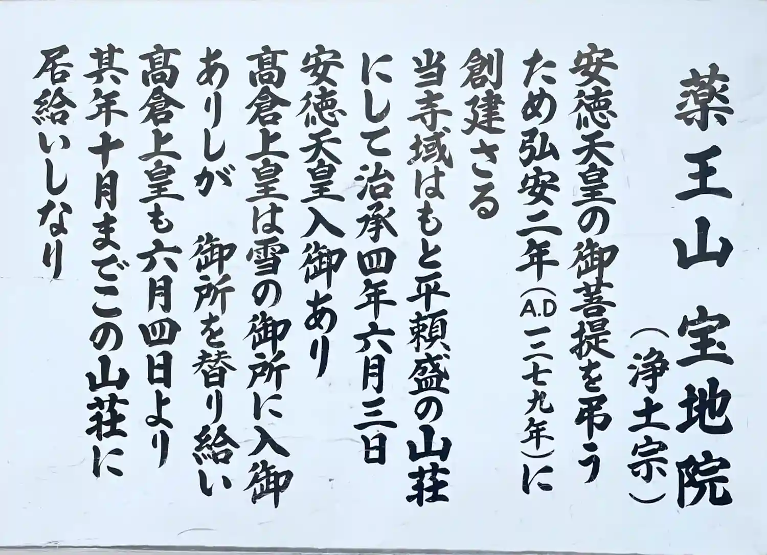 当寺域はもと平頼盛の山荘にして治承4年6月3日安徳天皇入御あり。