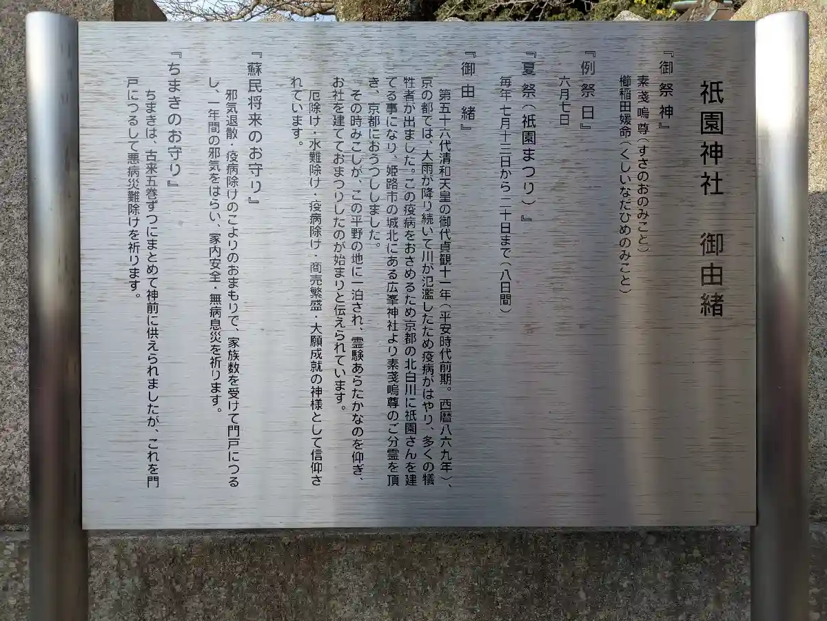 <祇園神社御由緒>