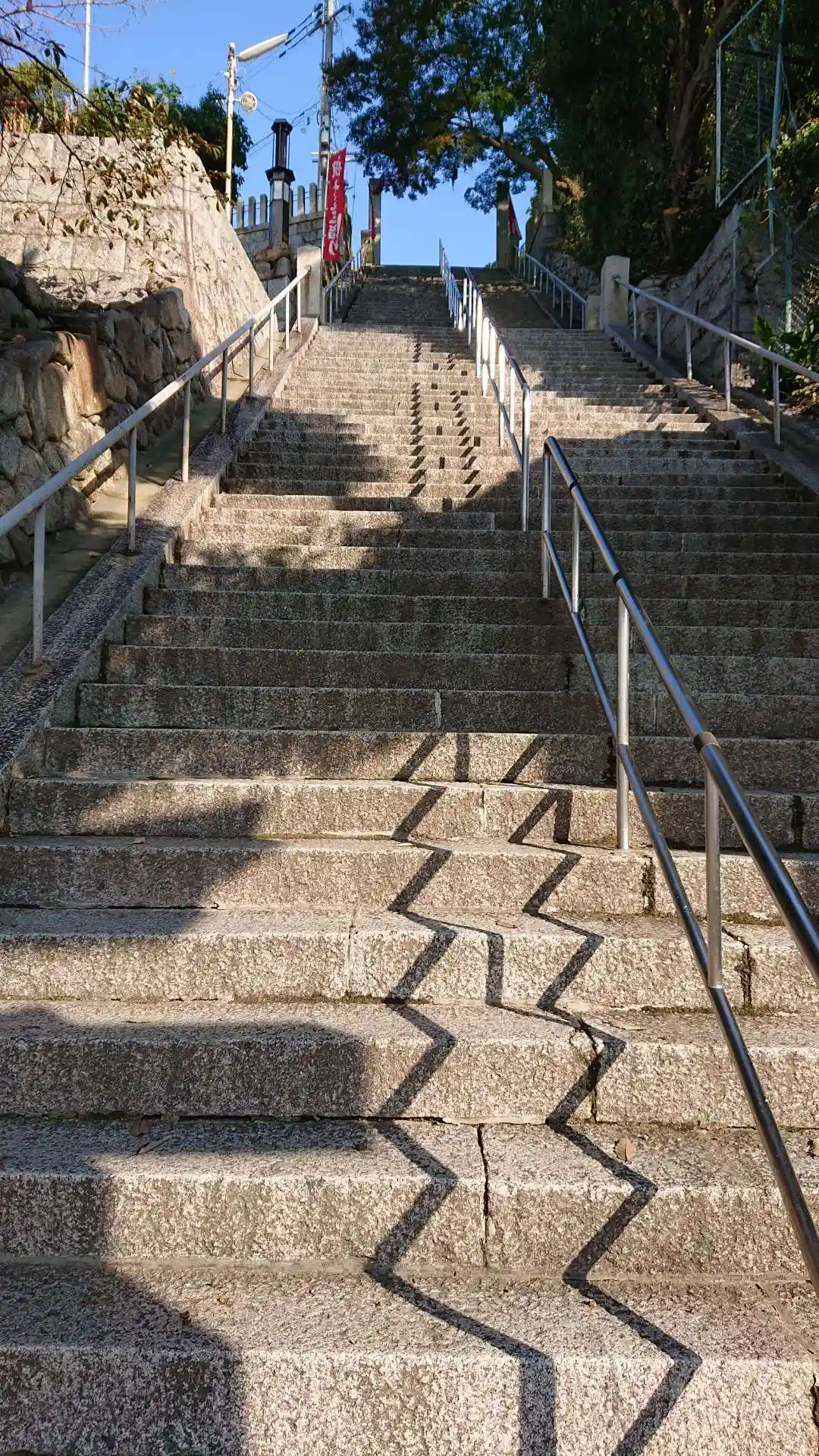 五宮神社より徒歩で向かいました。坂の街の路地を歩きながらは非常に楽しいものでした。五宮神社からは西に向かえば坂道は余りありません。但し、祇園神社の石段は非常に急勾配で怖いくらいです。女坂もありますので足元に維新のない方はそちらを選ばれたほうが無難です。しかし、石段からの眺望と昇り切った達成感は格別です。丁度、神主さまが掃除をされていたのでお声をかけて五宮神社と合わせて御朱印を戴きました。山の中腹に鎮座するこの神社は別世界を作っているようで、境内も丁寧に管理されており非常に気持ちがよく清々しい気持ちにさせてくれる神社でした。
