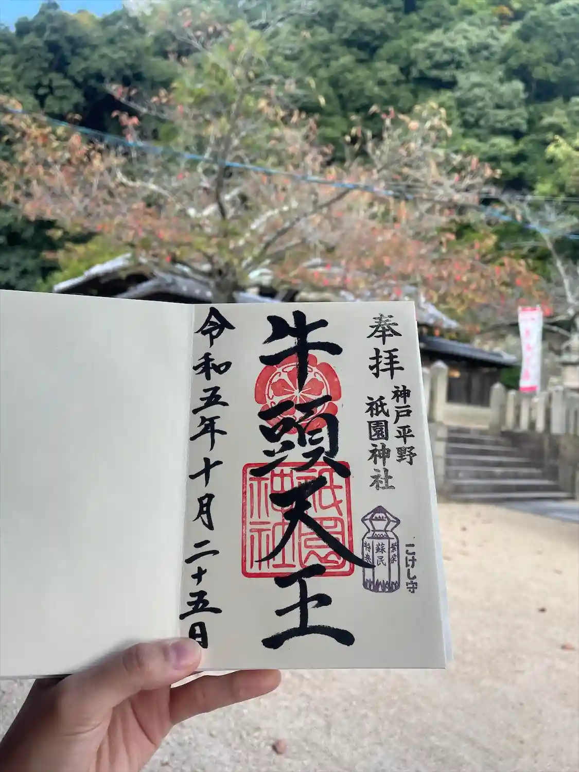 五宮神社から西へ10分ほど歩いたところです。私が参拝した時は五宮神社の社務所で御朱印を書いて頂くことが出来ましたが、不在の時には祇園神社で書いて頂くことが出来るそうです。