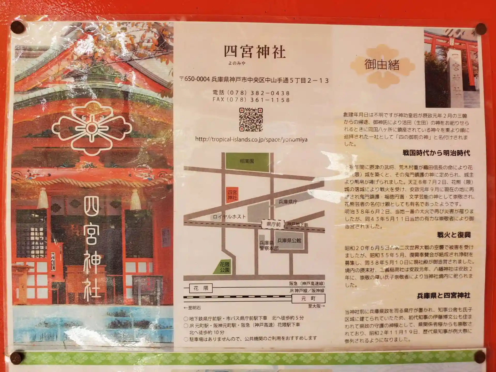 鳥居の斜め前には兵庫県庁、境内の北側には相楽園があります