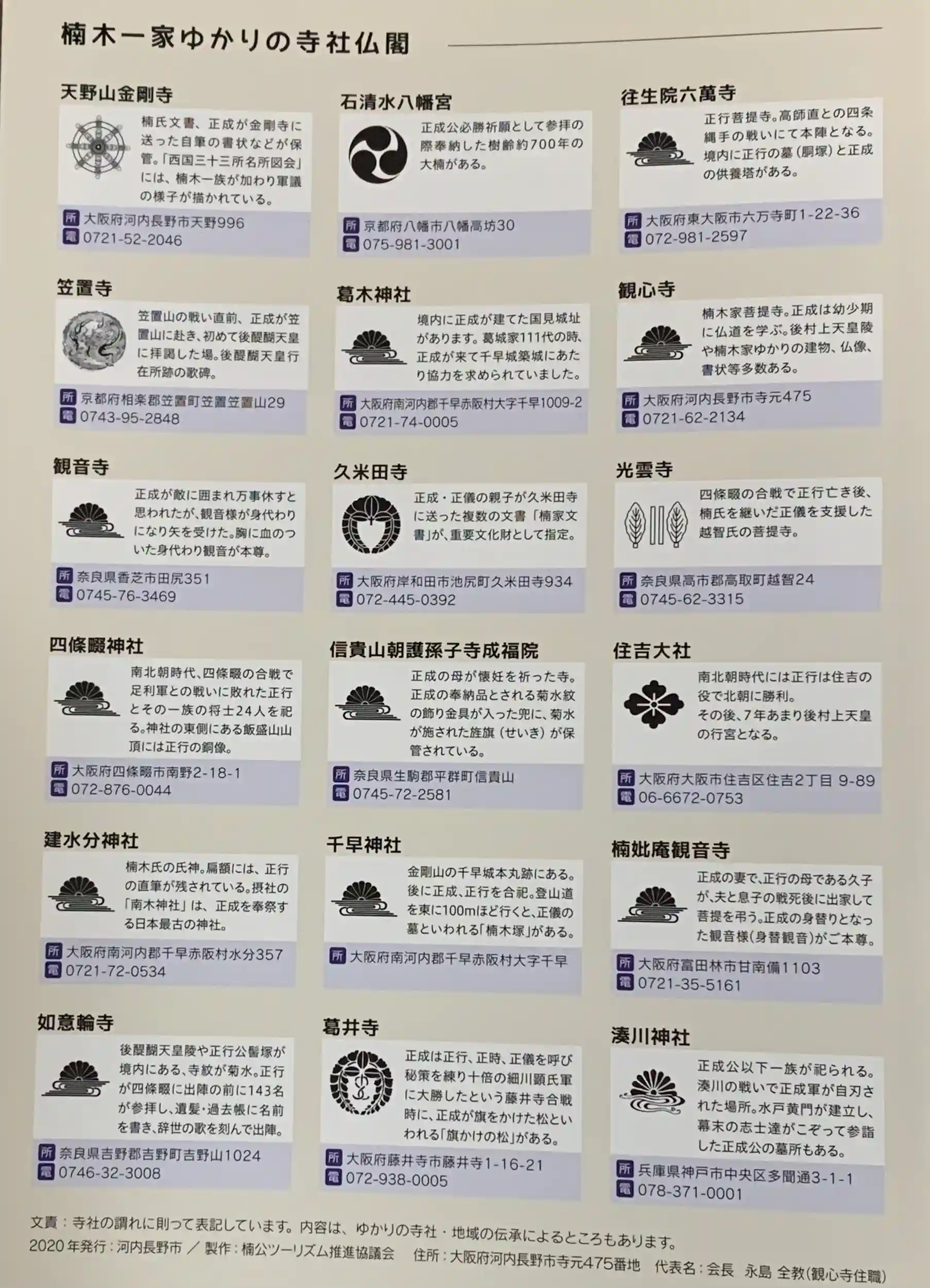楠公さん(御祭神)の事をもっと知りたい。ゆかりのある神社仏閣を巡ってみたい。と考えていると目に入った無料のパンフレット。有り難くひとつ持ち帰りました。