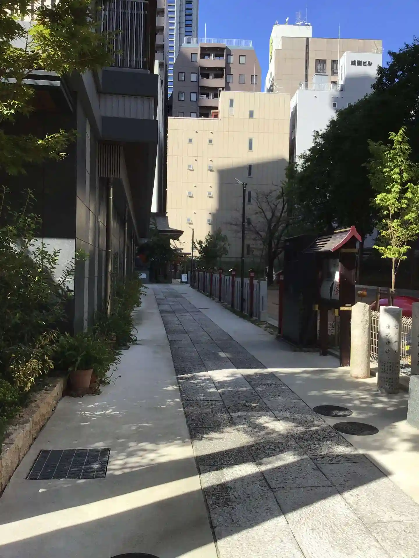 宿泊していたホテルの近くにあり、高層ビルと高層ビルに挟まれています。