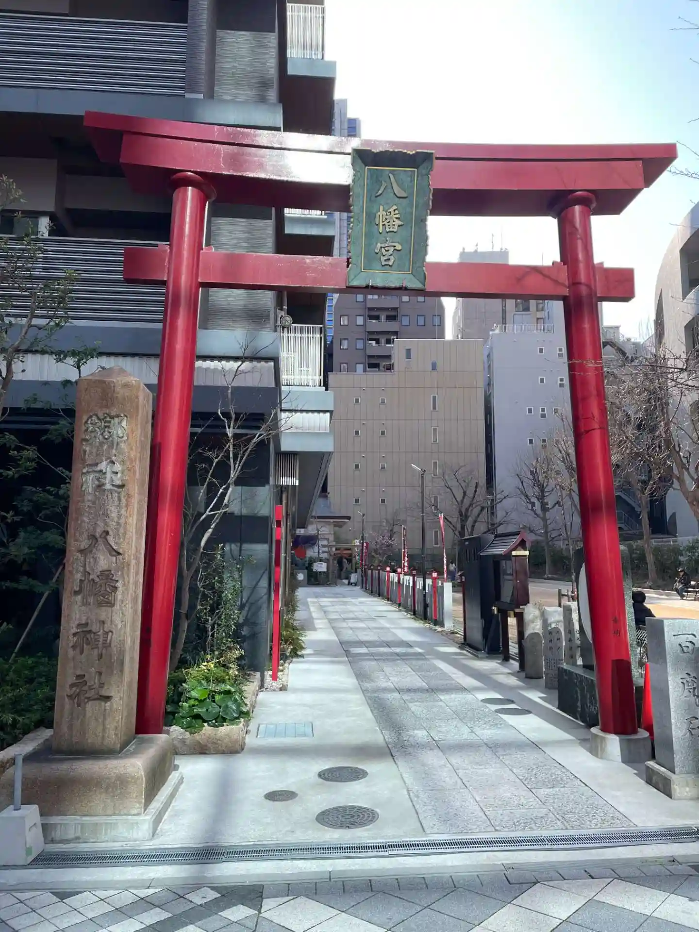 マンション横に 八幡宮の大鳥居があります。