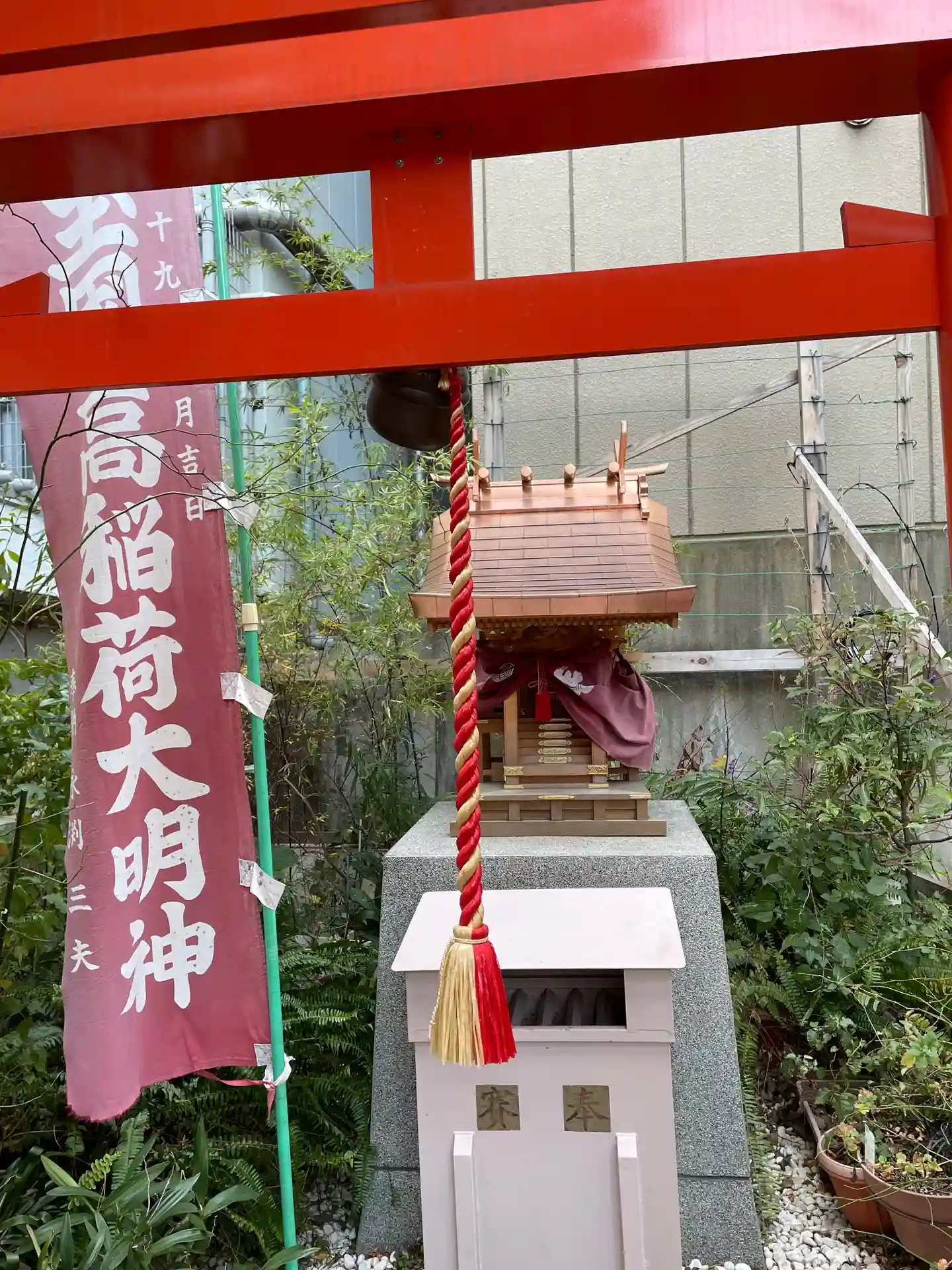 神戸市役所の東、フラワーロードより東になります。マンション一階に組み込まれた神社です。