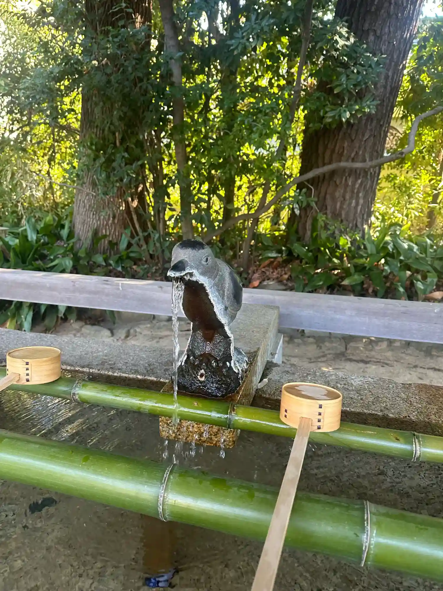 手水が珍しく鳥で これはきっと八咫烏だと思いました。
