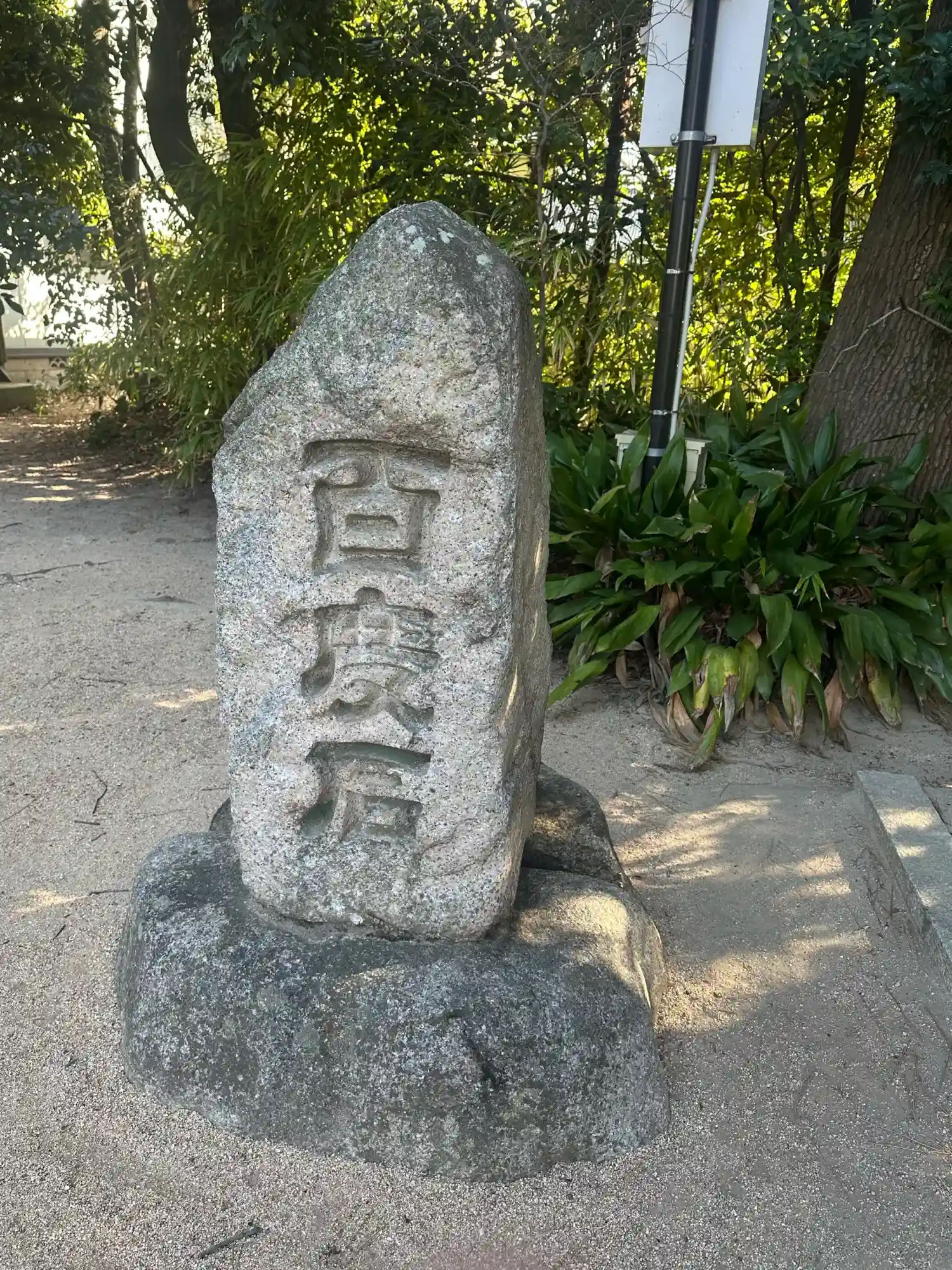 拝殿横には 御影石でできたサッカーボールがあります。