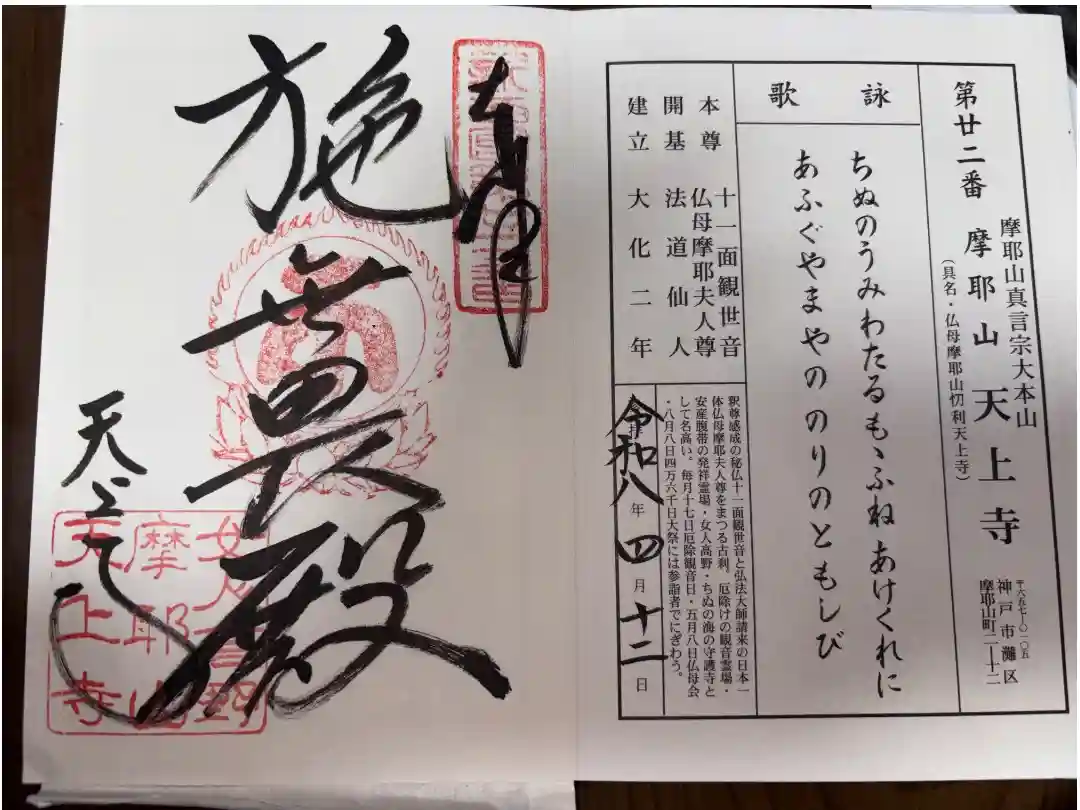 | 新西国三十三箇所 第22番 | ご本尊・ご祭神:十一面観音 御詠歌: ちぬの海 わたるもゝ船 あけくれに あふぐや摩耶の 法の燈火(ともしび) |