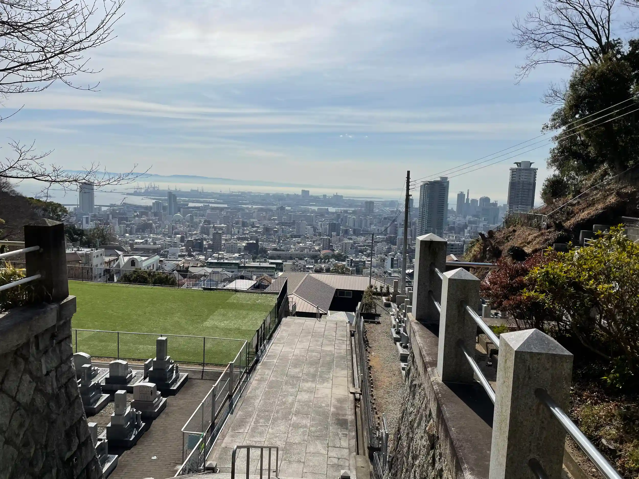 新神戸駅の北東、かなり斜面を登りますので、神戸市内への見晴らしは良いです。
