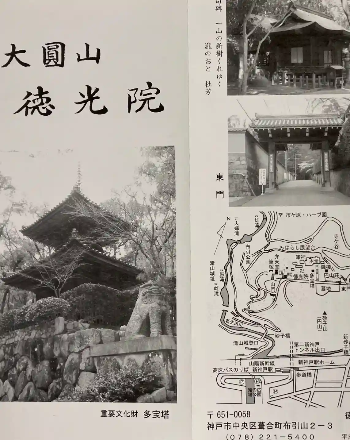 当山は、大圓山徳光禅院と称し、明治39年(1906年)の創建である。禅宗の一派、京都嵯峨野の臨済宗天龍寺派に所属し、夢想国師の法灯を掲げる。当時の管長高木龍淵禅師を請じて開山とした。 神戸にはゆかりの深い川崎造船所(現川崎重工業)の創始者川崎正蔵翁が民衆教化の禅道場創立を発願して、境内五百三十坪(1750平米)及び本堂、庫裡、山門、鐘楼などの伽藍を建立或いは移築して、一寄進を以って開基された。