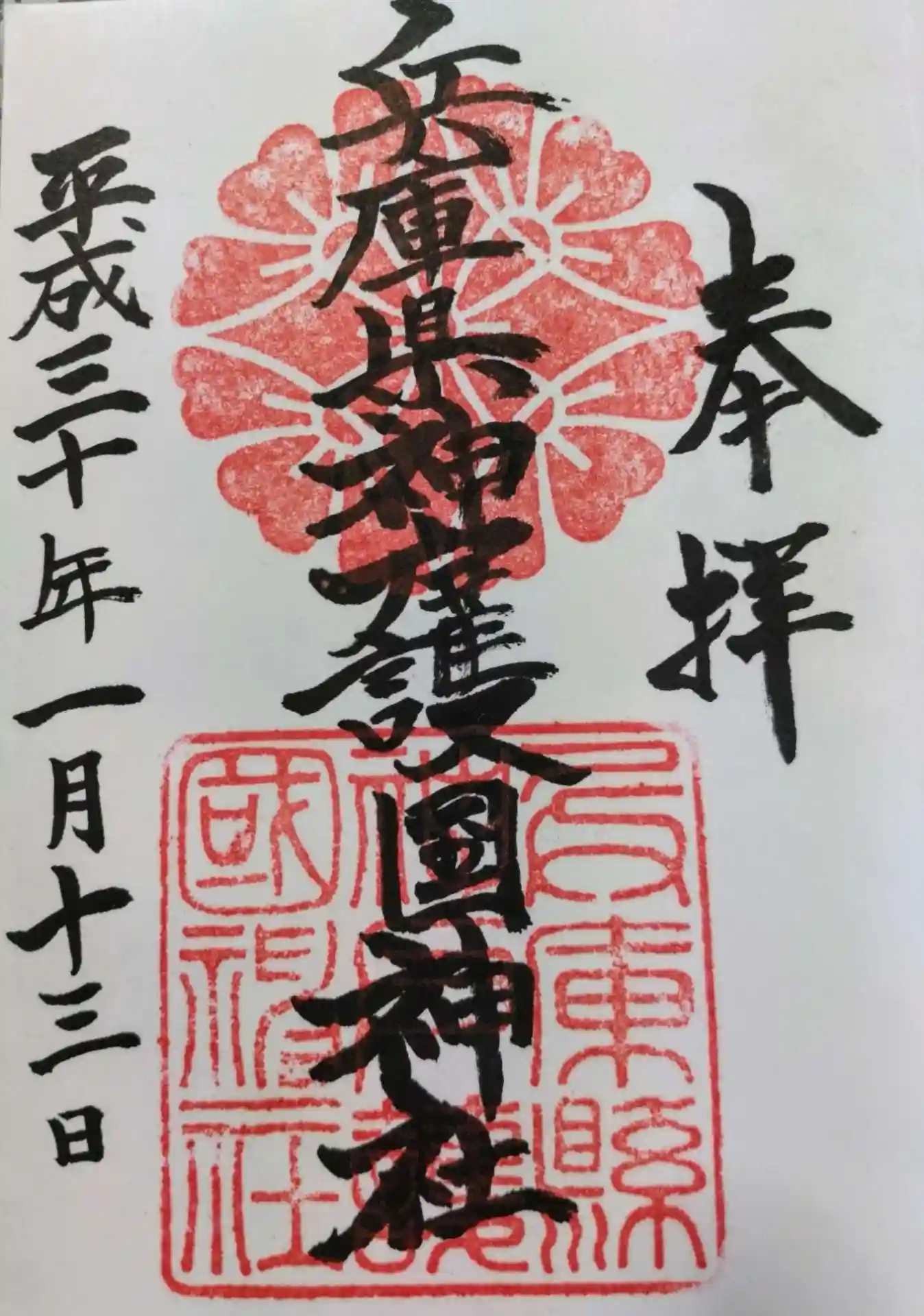 兵庫縣神戸護國神社を参拝しました。願かけ絵馬を受けました。