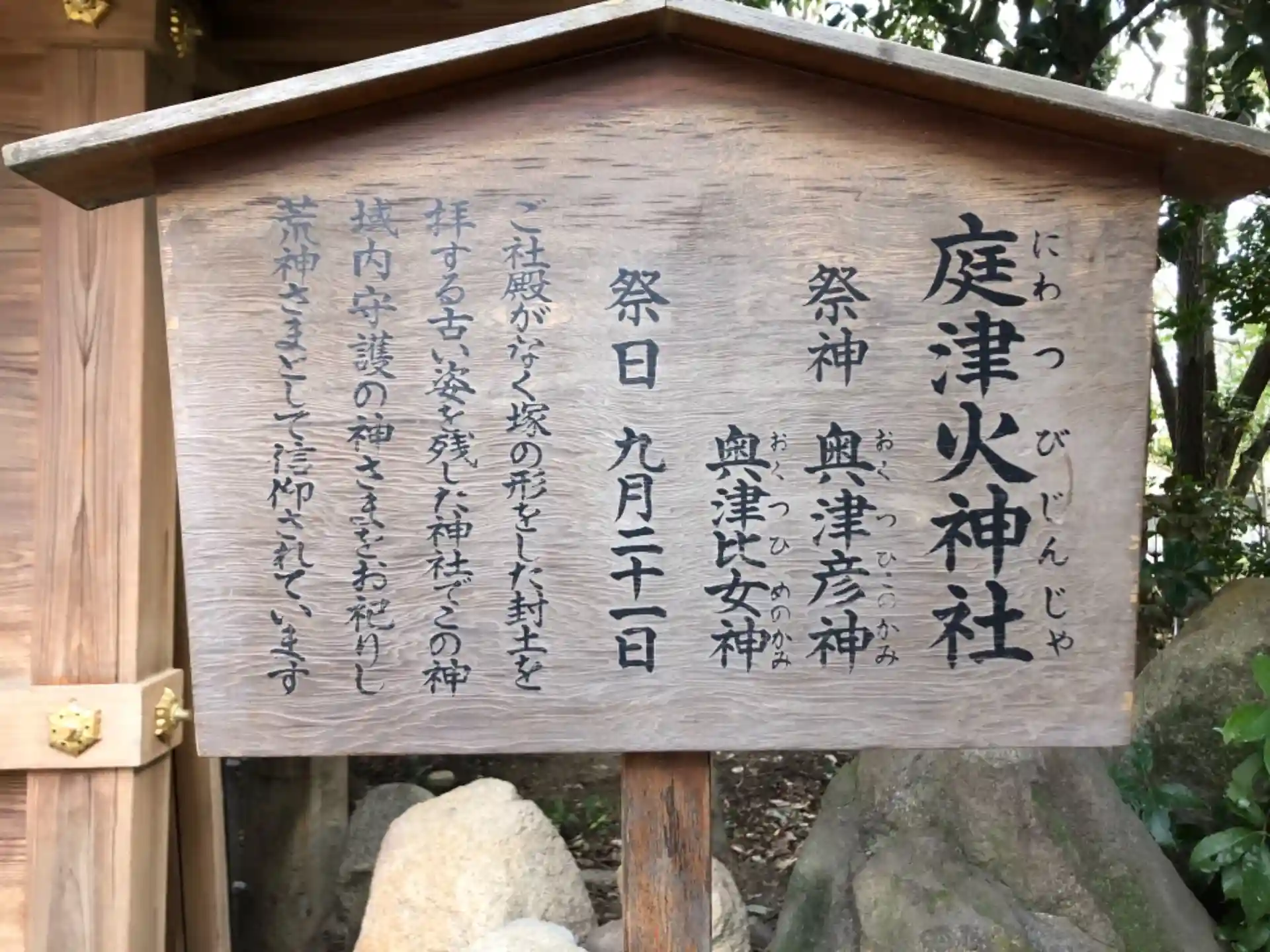 庭津火神社由緒書き
