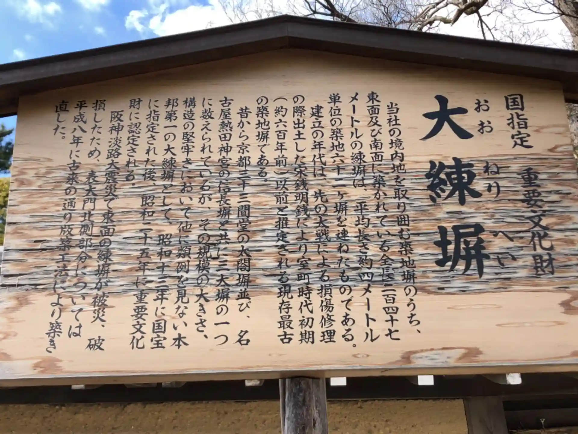 大練塀の由緒書き