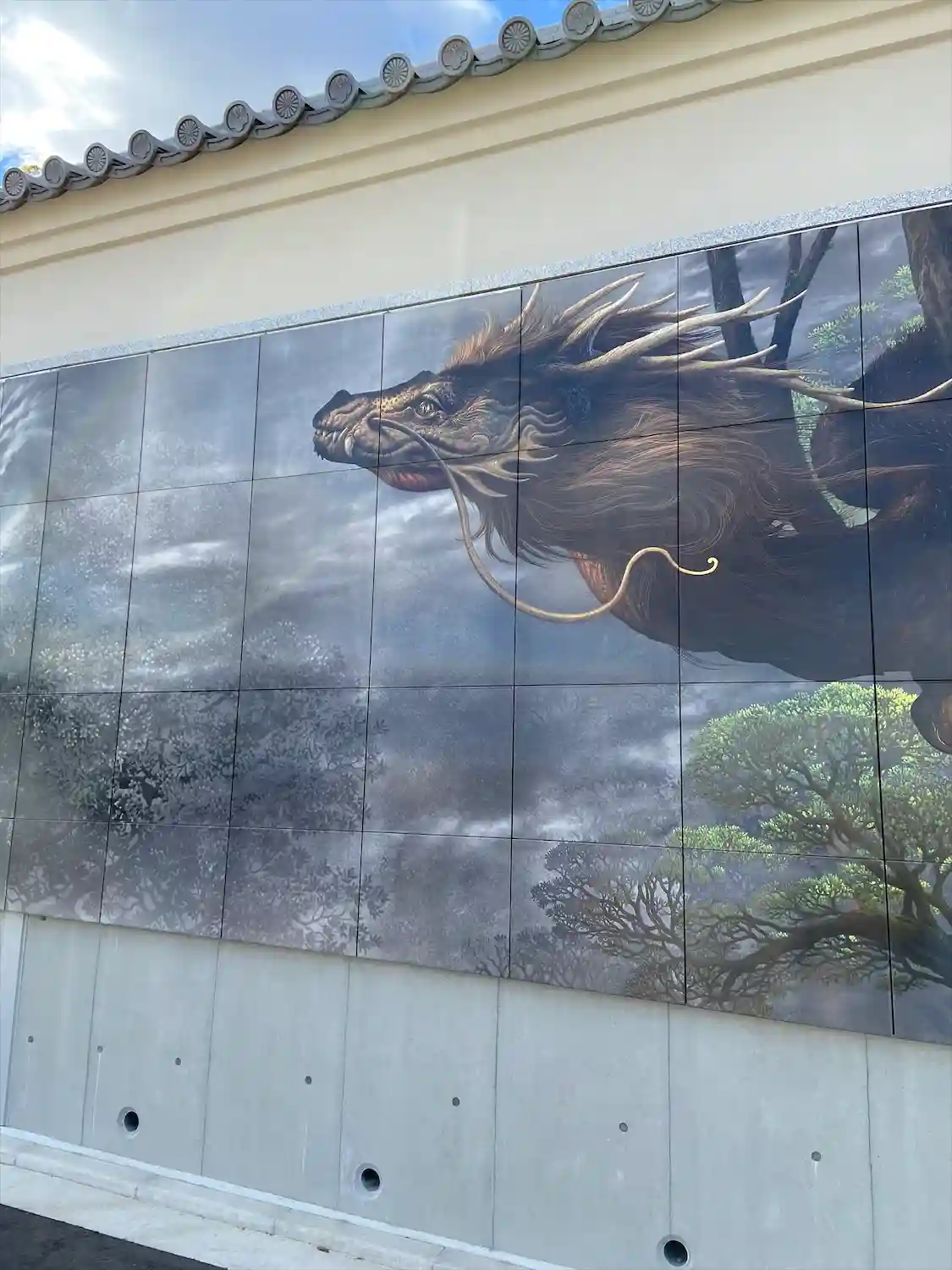 外壁には大迫力の龍の絵が。