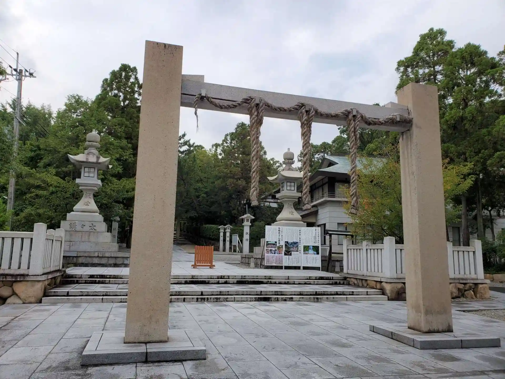 注連柱のそばに建つ灯籠