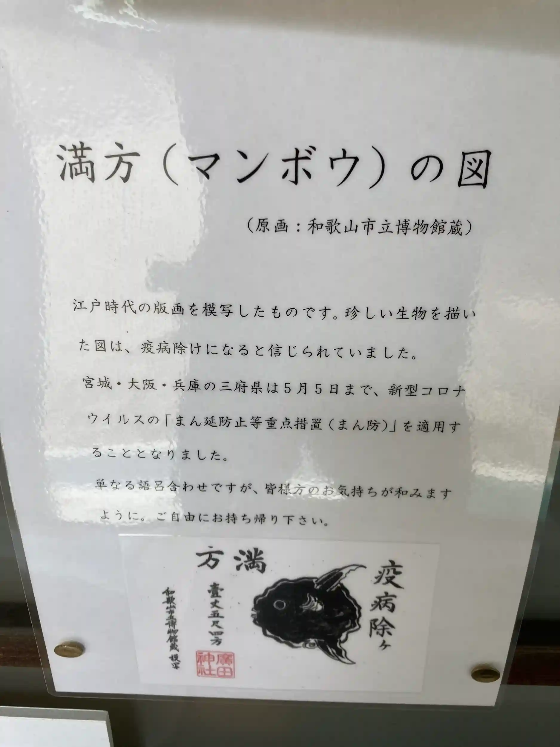 訪れた日はまだコロナ真っ最中でしたので、満方(マンボウ)の図という模写が配られていました。