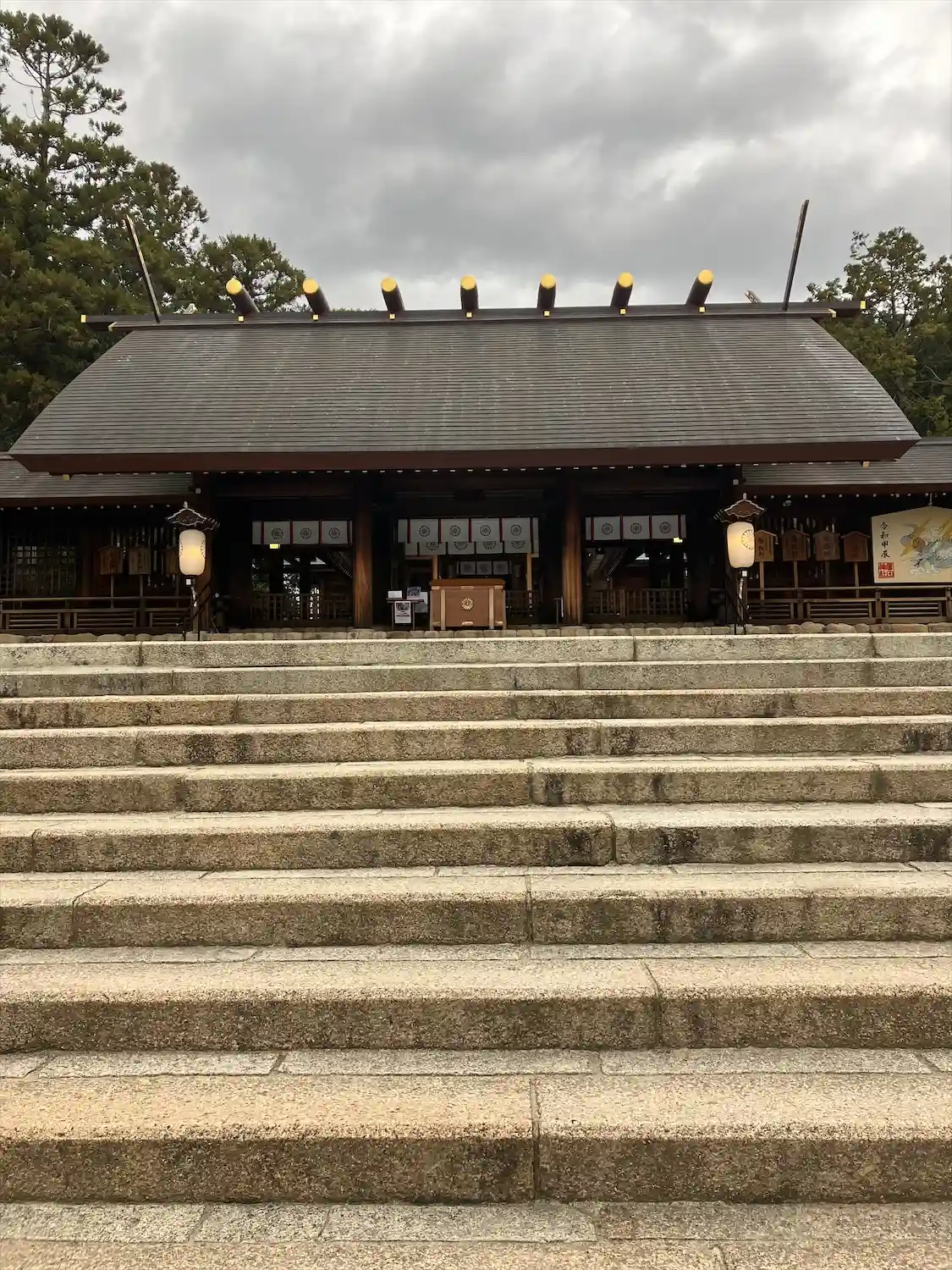 鳥居から社殿達も美しく、隅々まで綺麗でした。薄く暗くなるとライトが灯り幻想的です。