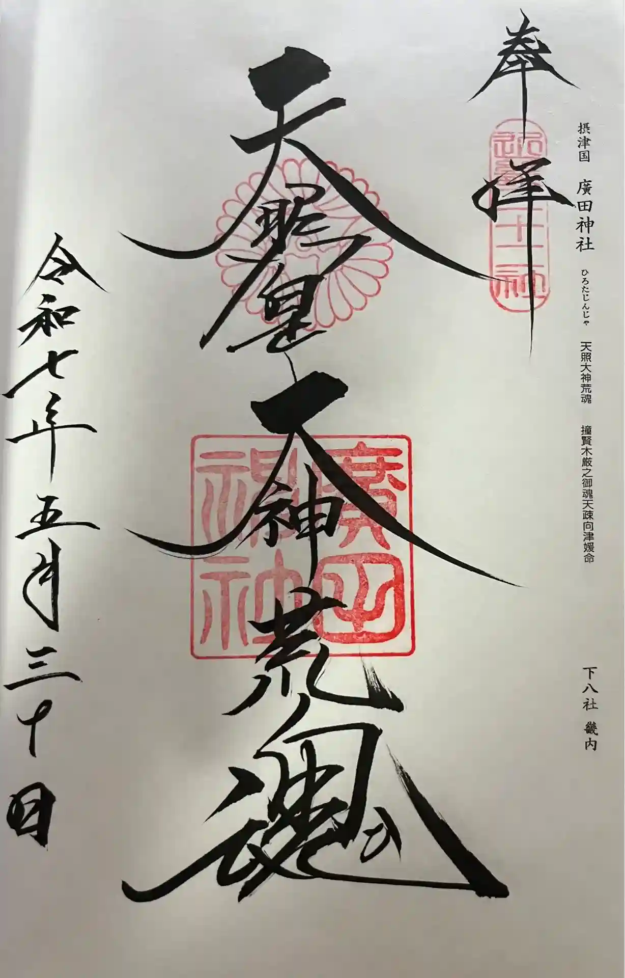 右上に「廣田神社摂社」印、真ん中に神社印が押されています。