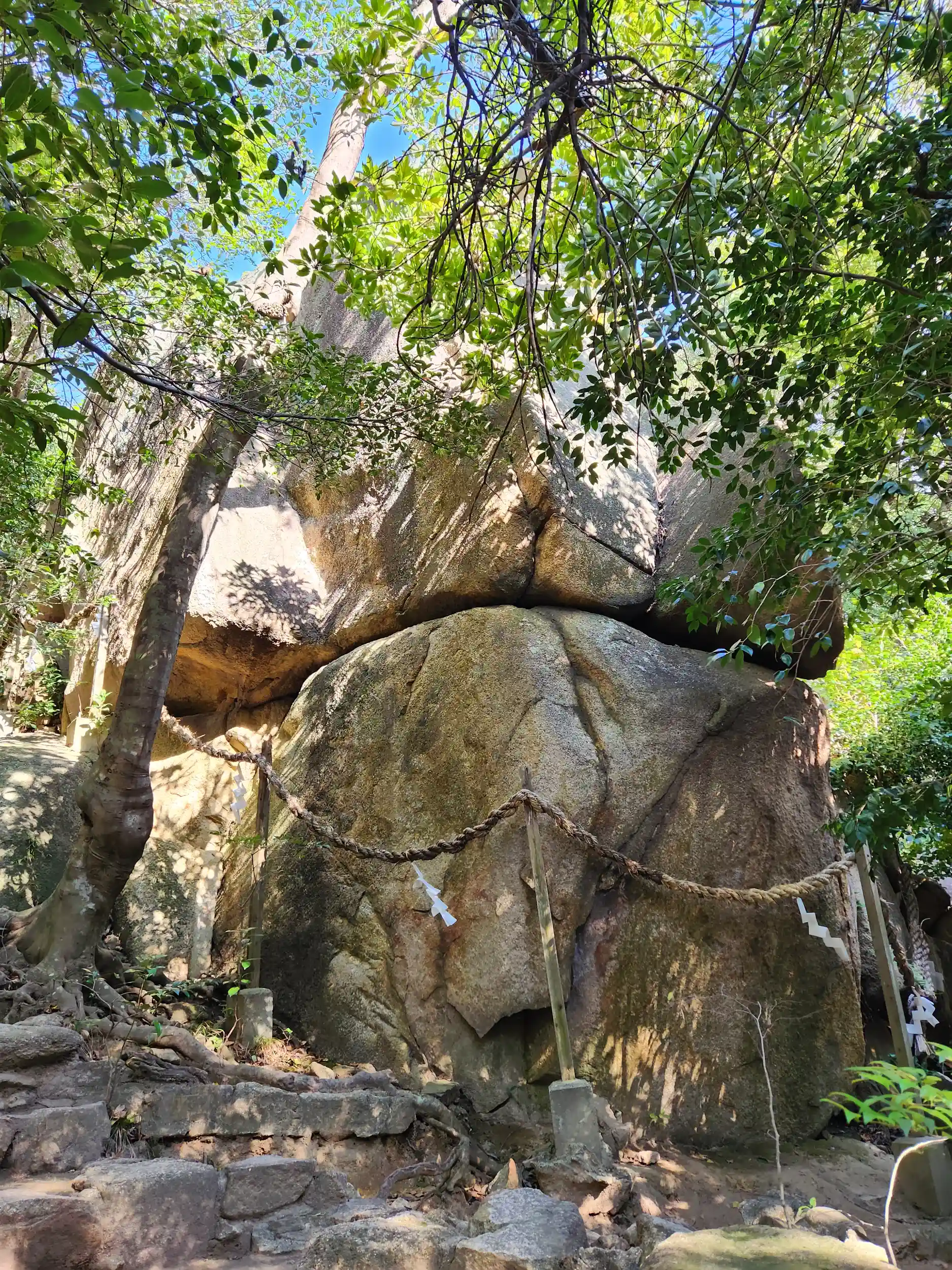 ご神体は周囲約40m、高さ10mの大霊岩で、目の当たりにするととても迫力があり、触れると力をいただける感じがします。