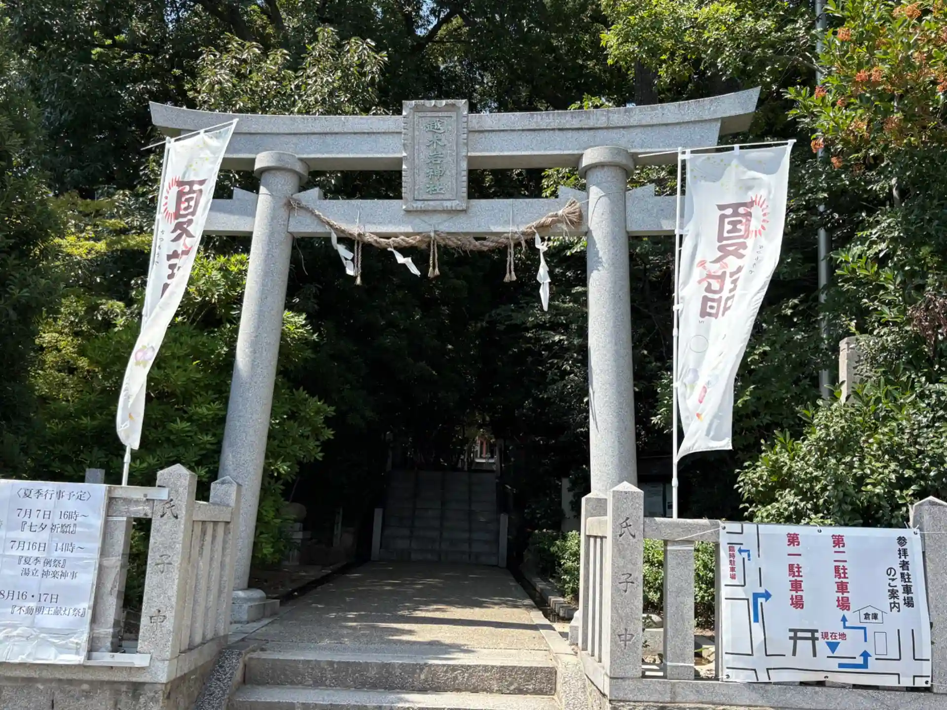 兵庫県西宮市にある越木岩神社に参拝⛩️駅から登りで遠くタクシー🚕に乗って行った。もう暑くてクタクタで、汗だく💦霊岩・甑(こしき)岩が有名なんだけど、もうそこまで行く元気がなく今回はあきらめた。夏詣御朱印を書置きでいただきました。