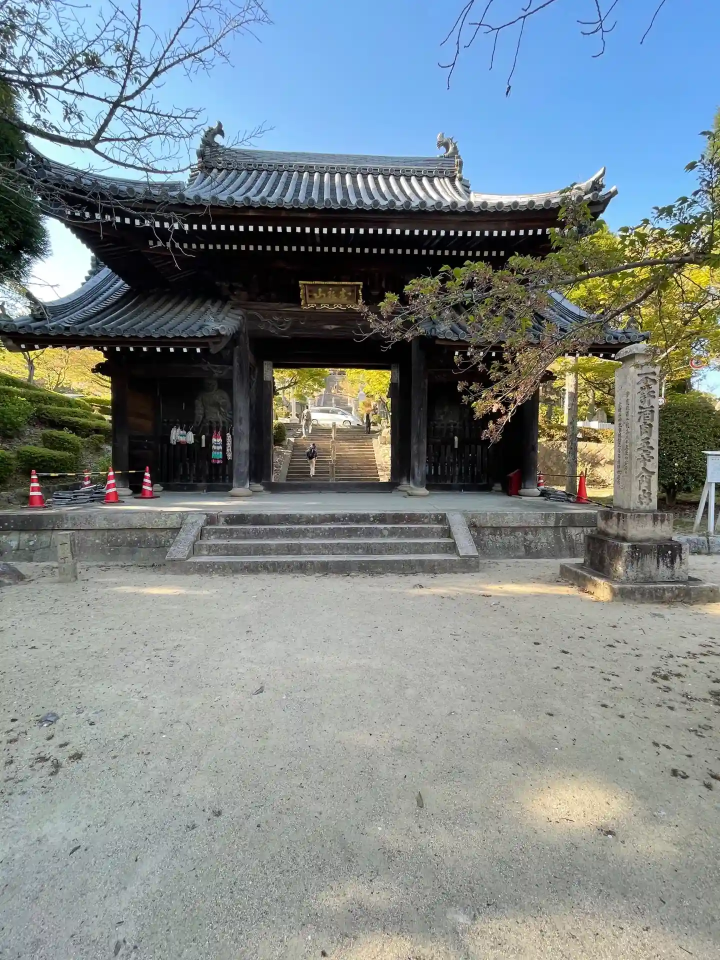 山門より本堂望むと一直線の石段。すごいですね。