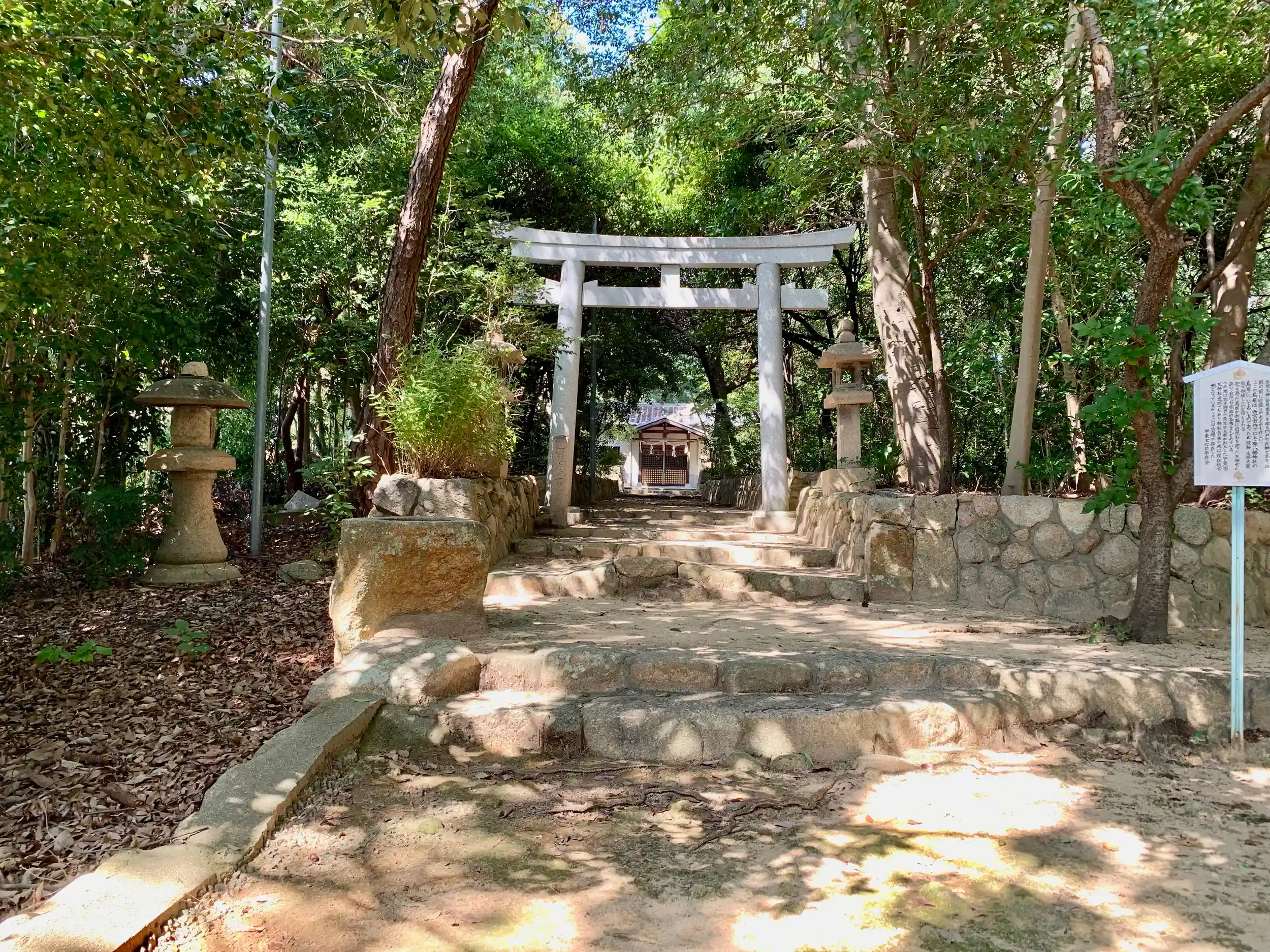 あ、この石灯篭...絶対神社あるわ、で寄り道参拝です。階段すげえ疲れた。