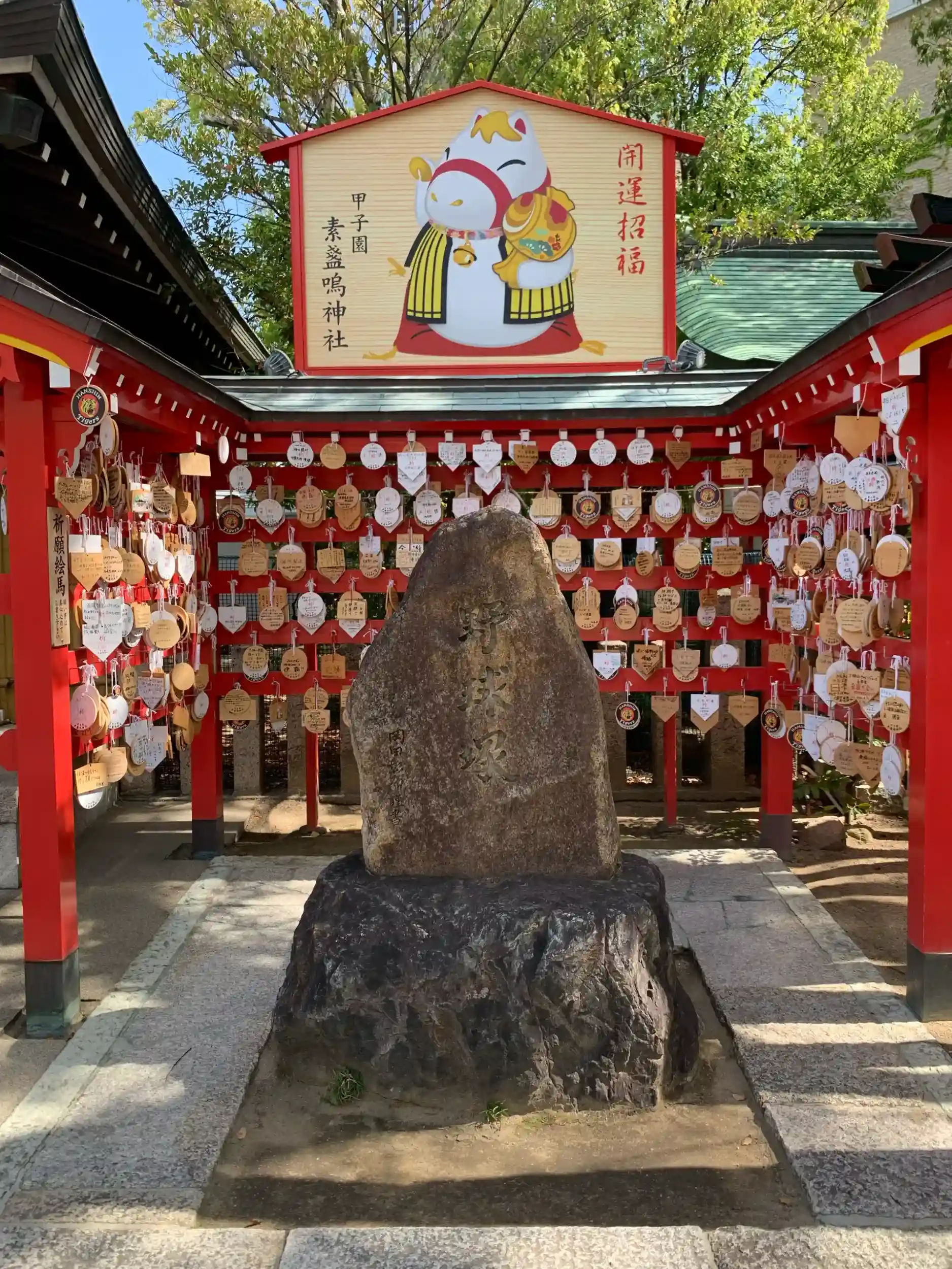 さて、甲子園球場のライト側に隣接してある神社は別名甲子園神社やタイガース神社と呼ばれることもあります。年代不詳なるも1736〜1740年に創建された記録があります。