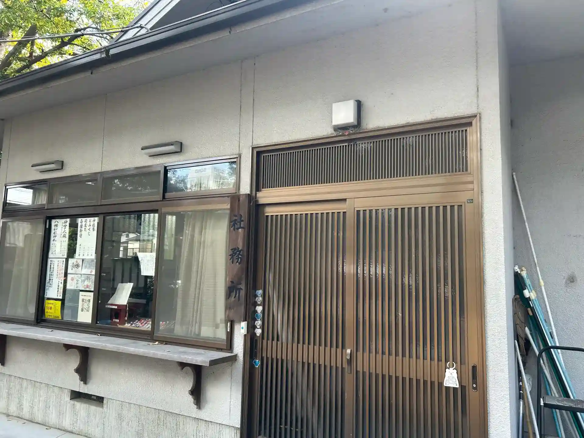 社務所の横は神輿を納める倉庫