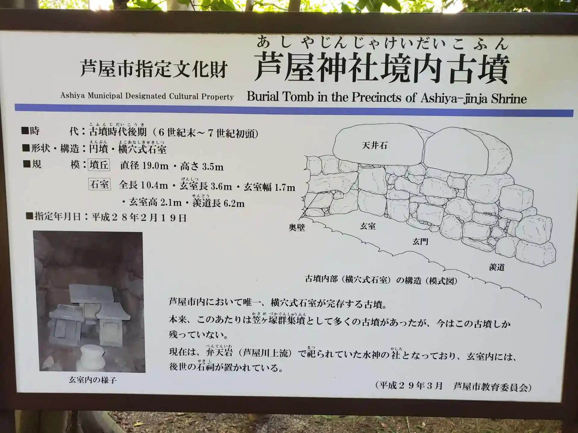 横穴式石室古墳の石室内に水神社として、菊理比売命をお祀りしています