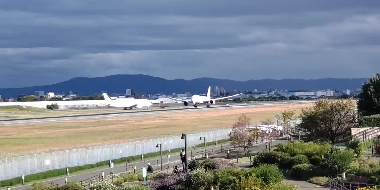 ここは、大阪空港の滑走路の直ぐそばです