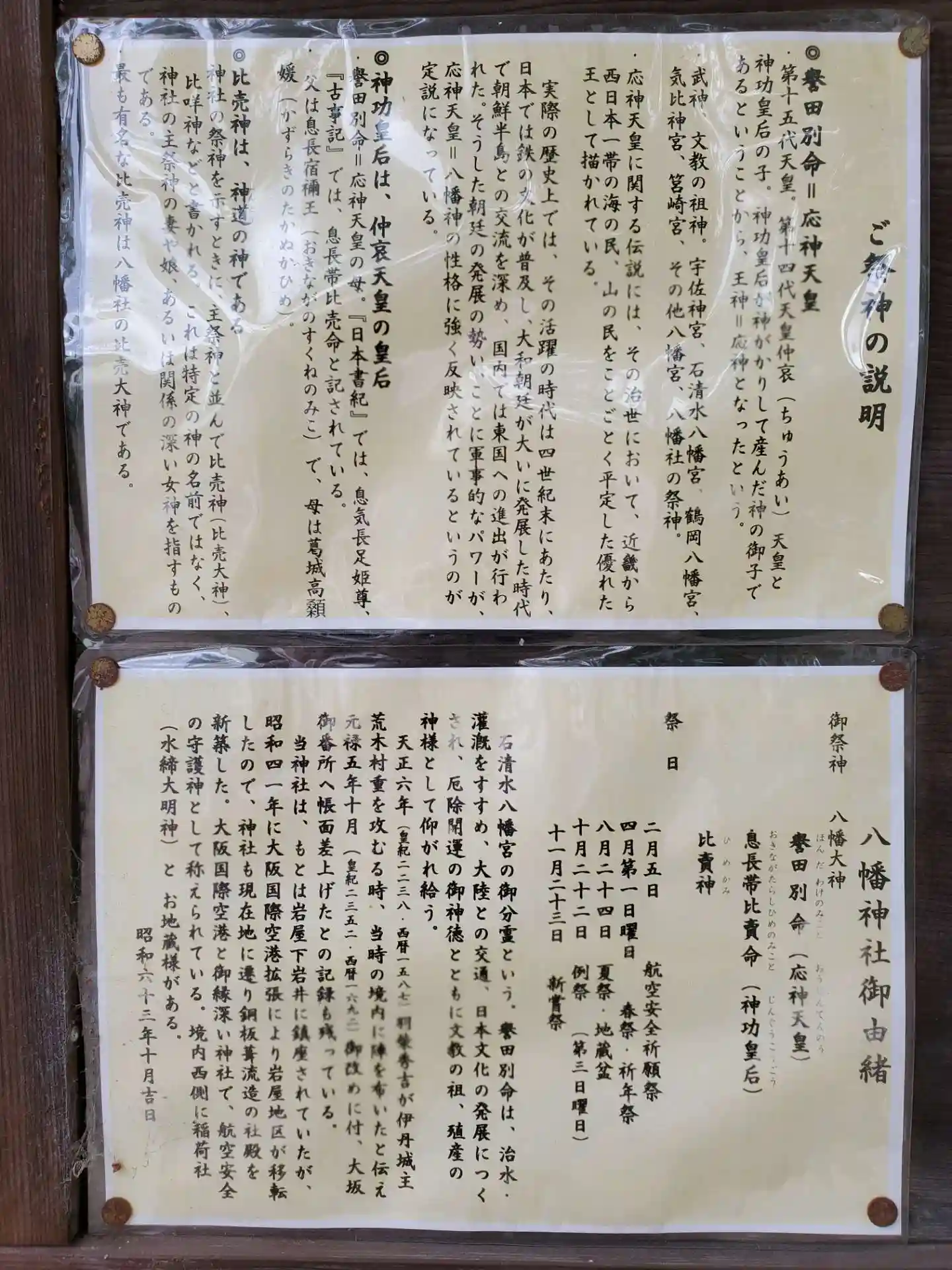 御祭神 誉田別命 息長帯比賣命 比賣神