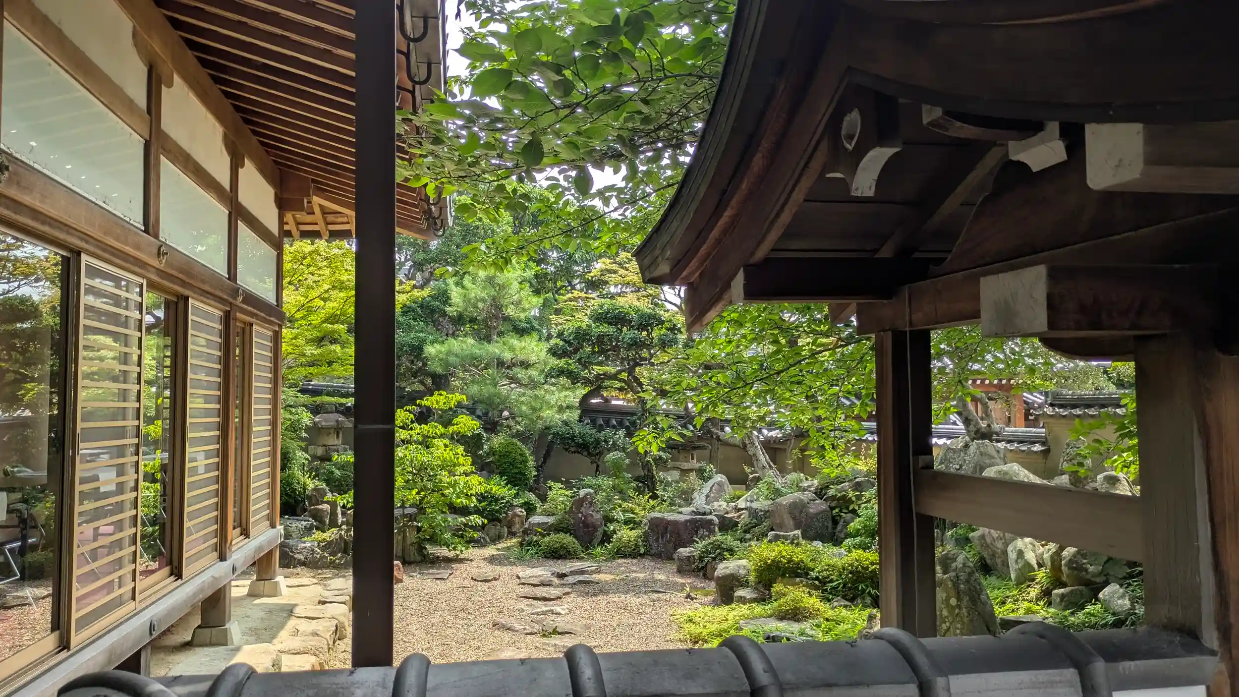 続いて観音院。普賢菩薩なのに観音院?と思ったら御本尊は十一面観世音菩薩だそうです😅こちらも本堂と書院のシンプル仕立てですが、華藏院と同じく片桐且元公作庭の三庭園の一つ「行の庭」があります・・・が門があり塀の上から覗き見るしかできず・・・😔書院の前庭でもあり、写経体験をされているようなので写経申し込めば書院から庭を眺めることはできそう・・・火木土のみやった😭機会があったら写経しに来てみようかな😊