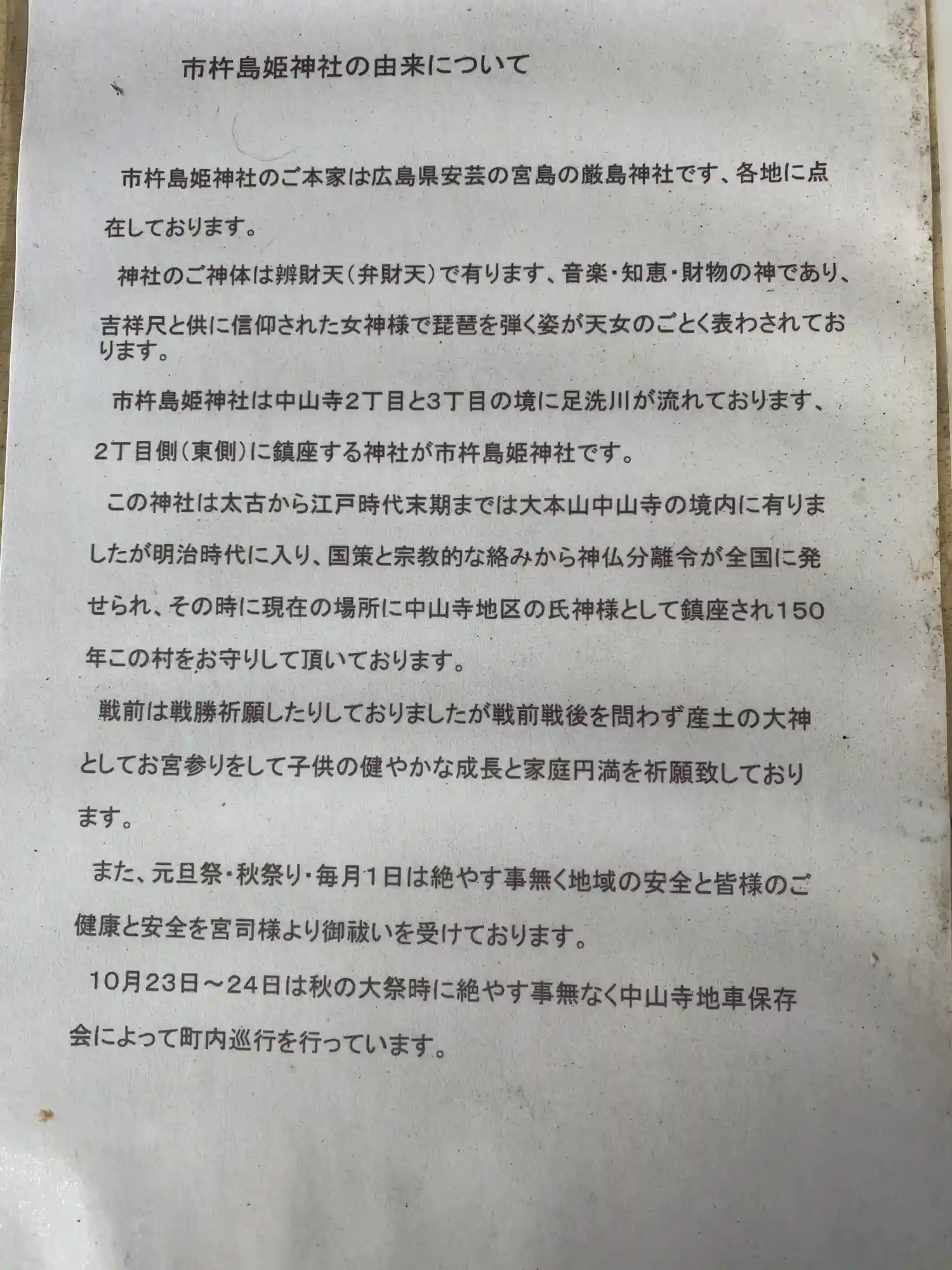 | ご祭神 | 《主》市岐島姫神,《配》天照大神,熊野大神,天児屋根命,誉田別命 |
