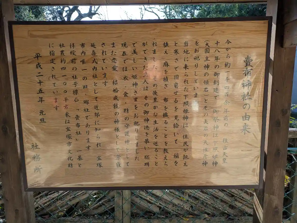 延喜式内社(摂津國川邉郡/賣布神社)、旧郷社です。